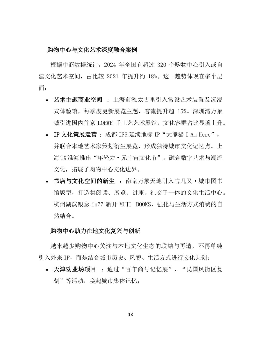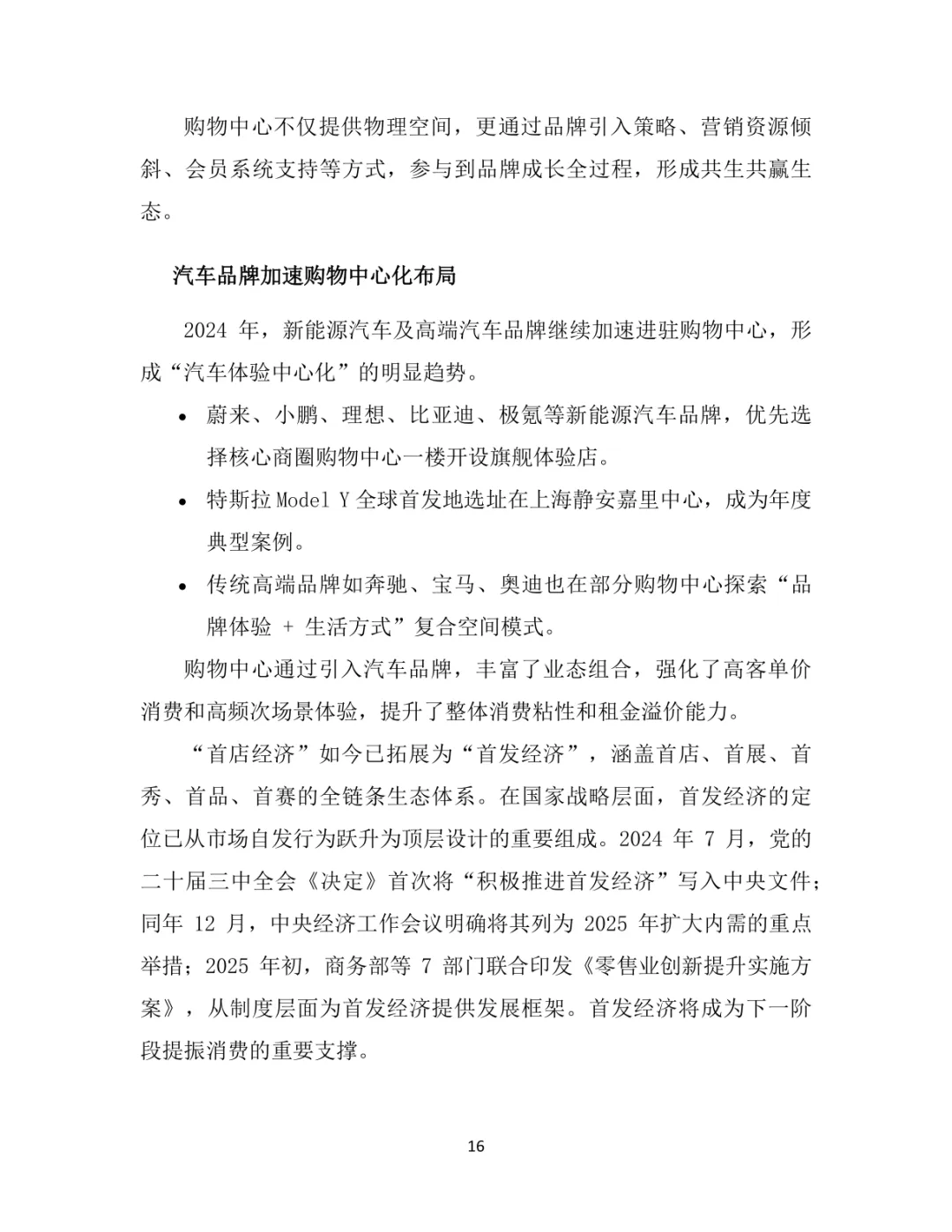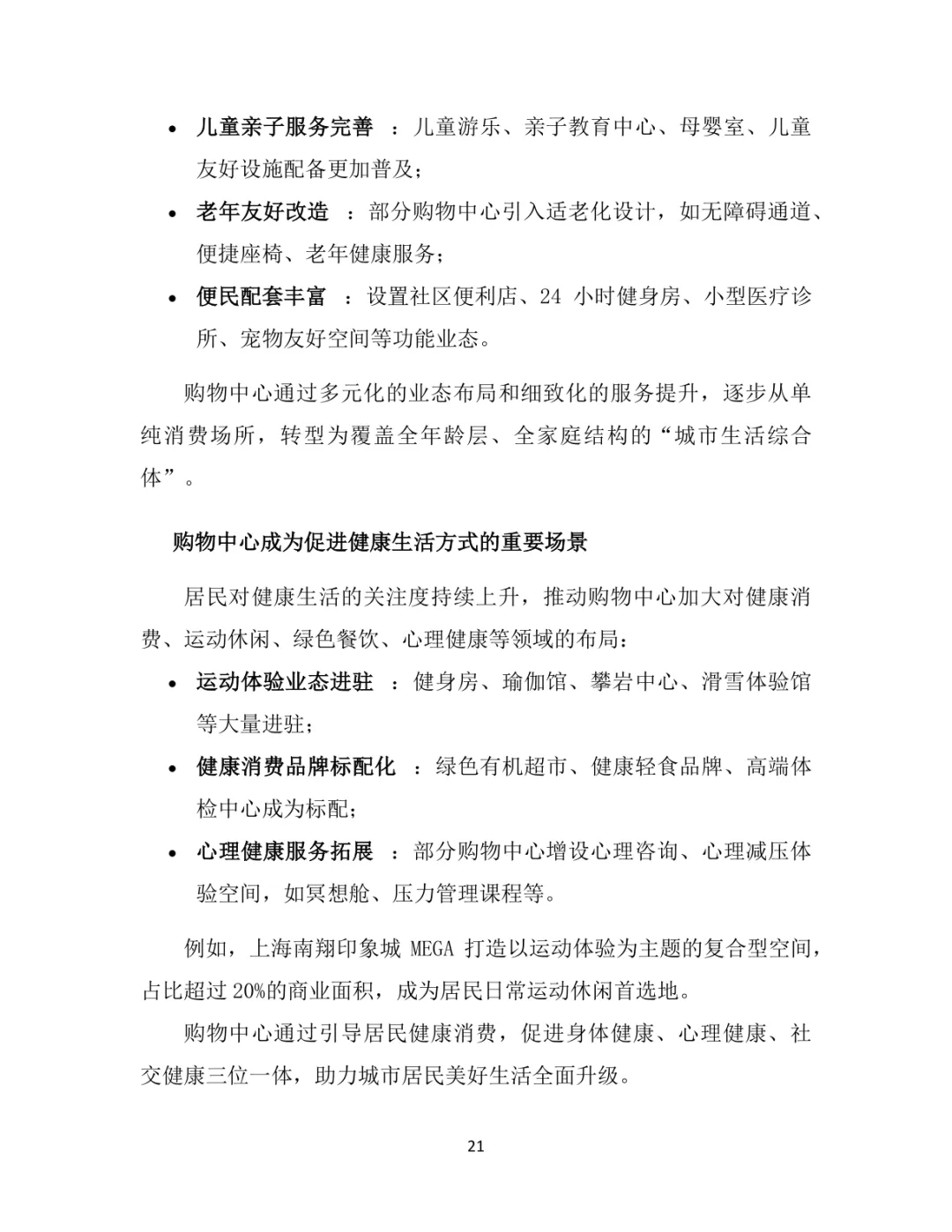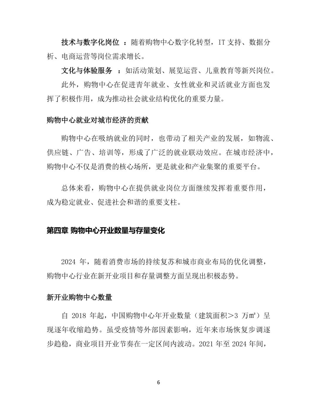 导读:报告聚焦中国购物中心的多元价值,基于全国 7000 余个 3 万平方米以上项目样本,系统呈现其对经济社会的综合贡献。2024 年,全国购物中心营业额达 4.2 万亿元,占社会消费品零售总额 8.6%,直接提供就业岗位 1180 万个,衍生岗位超 2000 万个,日均客流超 1.33 亿人次,成为稳定内需与就业的核心支柱。购物中心功能持续升级,从零售终端转型为 “第三生活空间”。超 320 个项目引入文化艺术空间,首店数量增长 12.7%,20% 存量项目通过绿色改造焕新,数字化与绿色低碳转型成效显著。在城市更新中,购物中心通过存量改造、片区赋能等模式,激活老旧城区活力,重塑城市空间价值。五大国际消费中心城市中,上海以 93.5 分位居贡献力指数榜首,深圳、北京紧随其后。报告提出应明确购物中心消费基础设施定位,优化土地、金融、税收政策,推动行业从规模扩张向质量提升转型,持续释放其在消费促进、文化传播、民生保障等领域的综合价值。