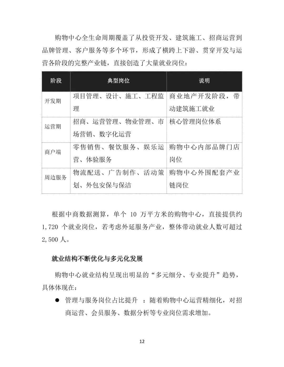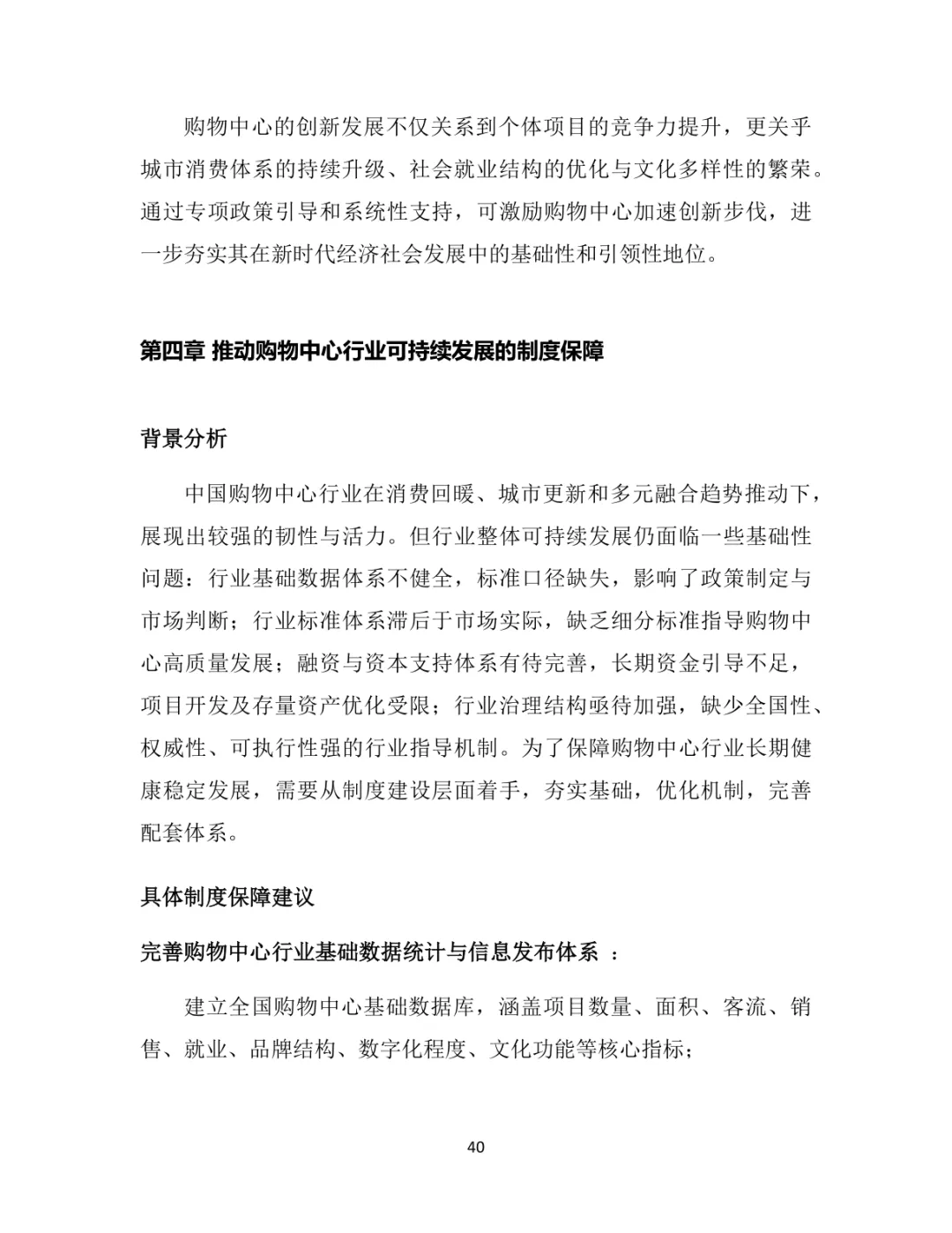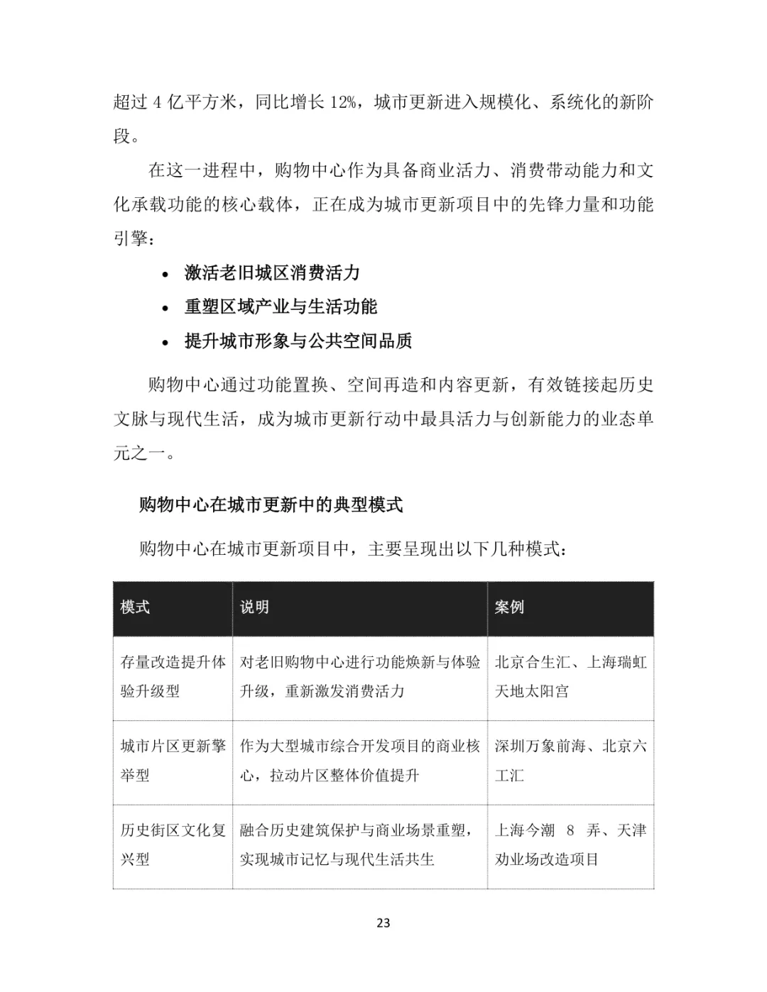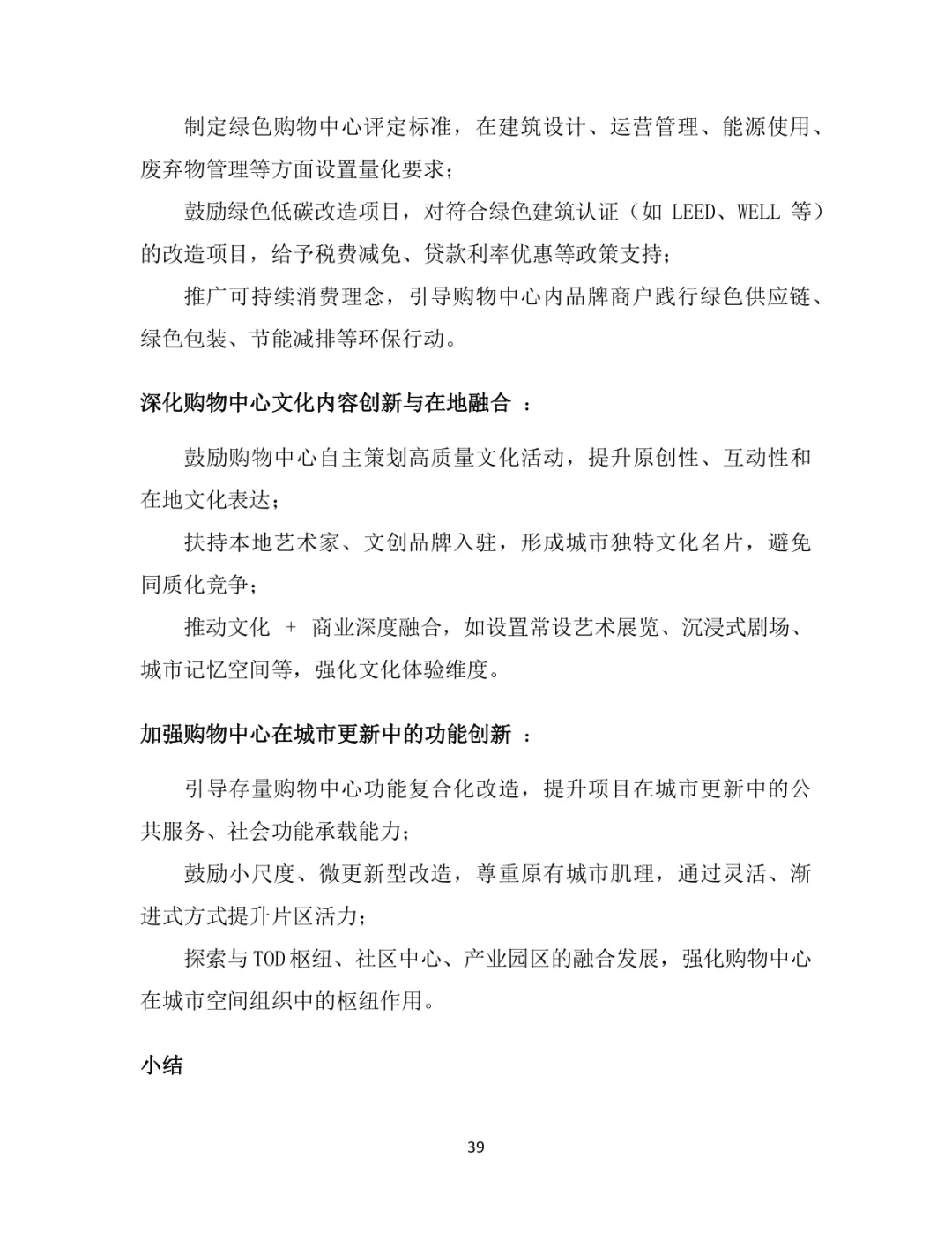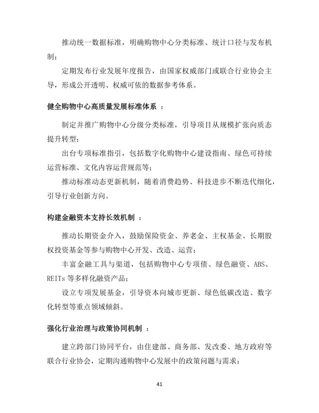 导读:报告聚焦中国购物中心的多元价值,基于全国 7000 余个 3 万平方米以上项目样本,系统呈现其对经济社会的综合贡献。2024 年,全国购物中心营业额达 4.2 万亿元,占社会消费品零售总额 8.6%,直接提供就业岗位 1180 万个,衍生岗位超 2000 万个,日均客流超 1.33 亿人次,成为稳定内需与就业的核心支柱。购物中心功能持续升级,从零售终端转型为 “第三生活空间”。超 320 个项目引入文化艺术空间,首店数量增长 12.7%,20% 存量项目通过绿色改造焕新,数字化与绿色低碳转型成效显著。在城市更新中,购物中心通过存量改造、片区赋能等模式,激活老旧城区活力,重塑城市空间价值。五大国际消费中心城市中,上海以 93.5 分位居贡献力指数榜首,深圳、北京紧随其后。报告提出应明确购物中心消费基础设施定位,优化土地、金融、税收政策,推动行业从规模扩张向质量提升转型,持续释放其在消费促进、文化传播、民生保障等领域的综合价值。