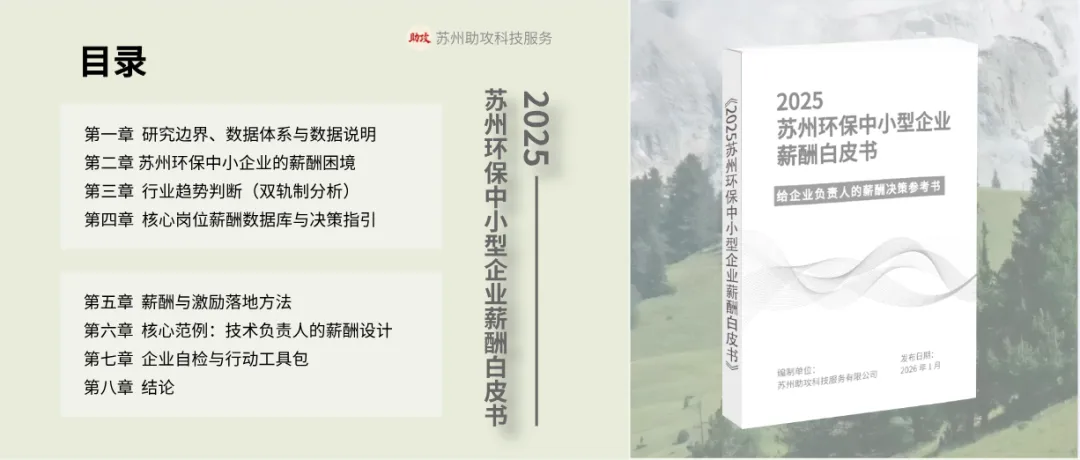 我们与百余位苏州环保中小型企业老板沟通交流,拆解了2000多个岗位数据,把我们把这些观察和数据,融合我们的人力资源和企业管理理念,写就这一本年度薪酬白皮书。