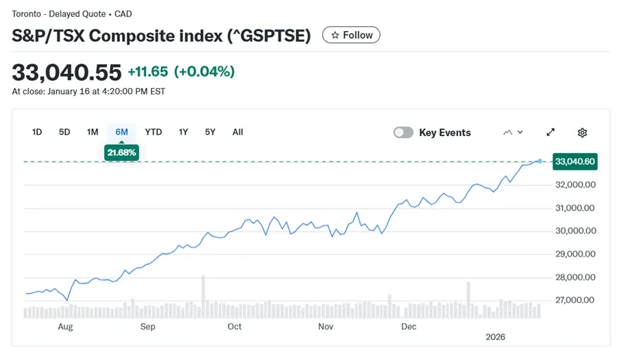 加拿大股市上周整体保持平稳。S&P/TSX 综合指数周五收于 33,040.55 点,当日上涨 0.04%。从周度来看,指数小幅收高,资源相关板块的相对强势对市场形成支撑,而整体市场仍处于区间震荡状态。