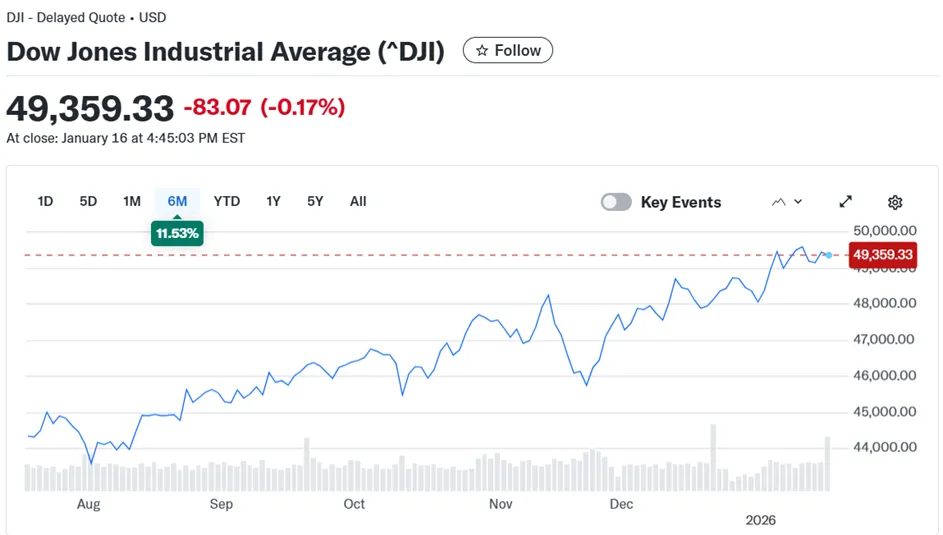 美国股市在周初创下历史新高后小幅回落。道琼斯工业平均指数周五收于 49,359.33 点,当日下跌 0.17%,周度亦小幅收低,反映出近期上涨后的整理走势。标普 500 指数收于 6,940.01 点,当日下跌 0.06%;纳斯达克综合指数收于 23,515.39 点,当日微跌 0.06%。与前一周相比,三大指数整体变动有限,显示在周初高点后上行动能暂时放缓。