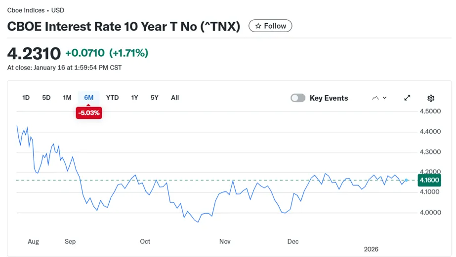 美国国债收益率上周走高。10 年期美国国债收益率周五升至约 4.23%,较周初水平有所上升,变动发生在通胀数据公布之后。