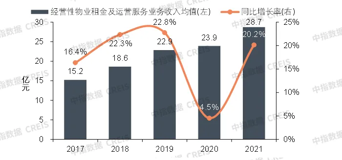 经营性物业租金及运营服务收入均值及同比增速
