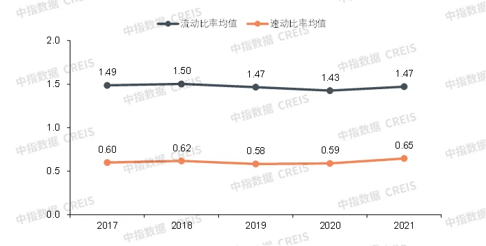 商业地产百强代表企业2017-2021年流动比率与速动比率均值