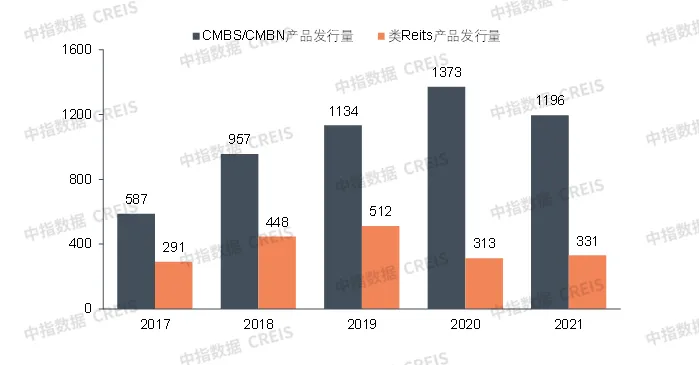 2017-2021年类REITs和CMBS/CMBN产品发行量