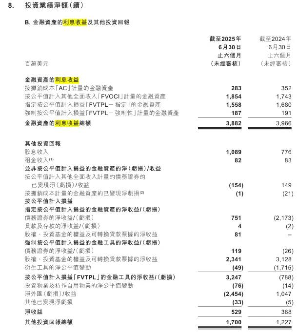 和总投资收益一样,友邦的“投资回报”也包括了:利息收入、股息收入、已实现的收入、公允价值变动(公允价值在友邦这里叫做“公平值”)等核心内容。