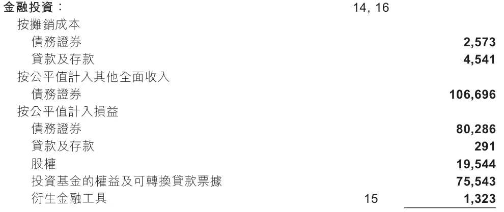 友邦的其他全面收入也是分为两个部分:可重新分类至损益的(也就是FVOCI-债权)和不可重新分类至损益的(FVOCI-股权),下图是前者的截图: