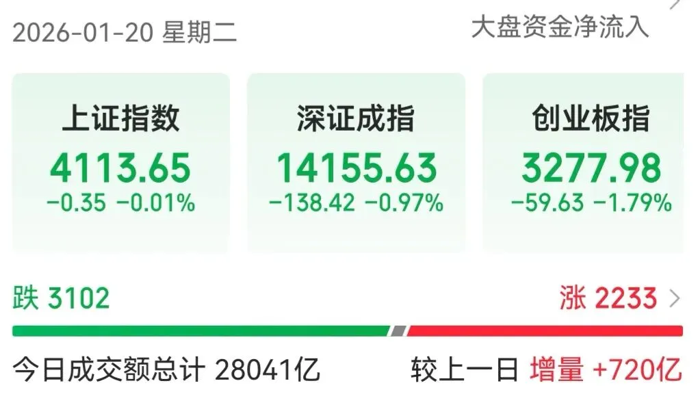 1月20日(周二),沪指回调幅度微不足道,但A股平均股价指数大跌-1.16%,市场情绪明显转冷。