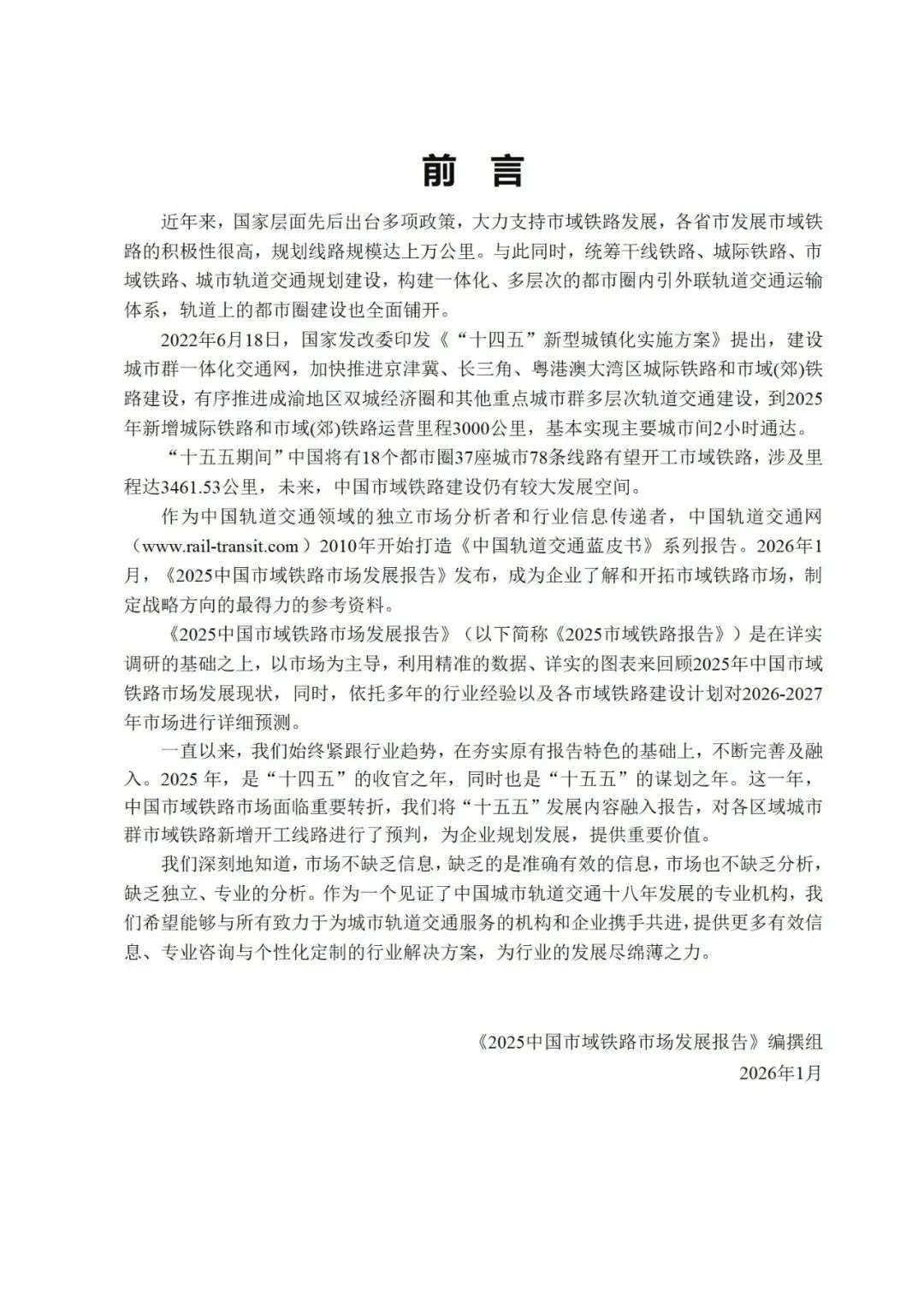 《2025中国市域铁路市场发展报告》(以下简称《2025市域铁路报告》)是在详实调研的基础之上,以市场为主导,利用精准的数据、详实的图表来回顾2025年中国市域铁路市场发展现状,同时,依托多年的行业经验以及各市域铁路建设计划对2026-2027年市场进行详细预测。