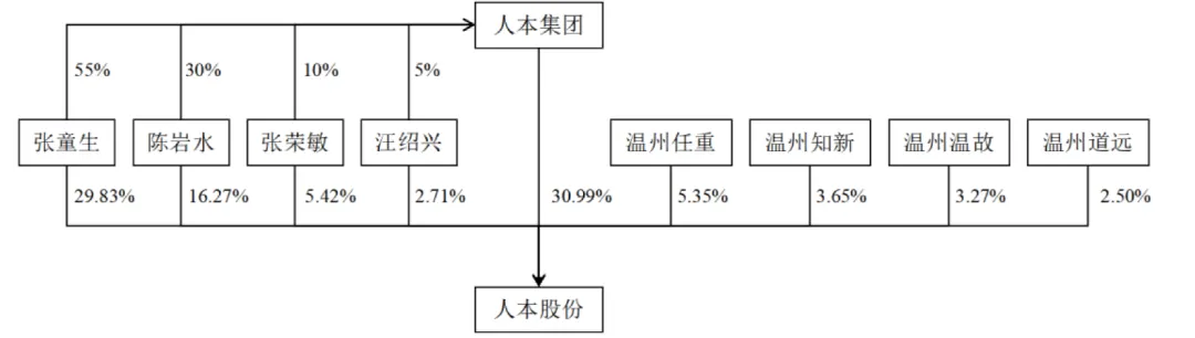 截至招股说明书签署日,公司总股本为38,723.00万股,股权结构相对集中且稳定。控股股东为人本集团有限公司,直接持有12,000.00万股,占比30.99%;实际控制人为张童生,直接持有11,550.00万股(占比29.83%),并通过人本集团间接控制30.99%的表决权,合计控制公司60.82%的表决权,对公司重大决策具有主导作用。