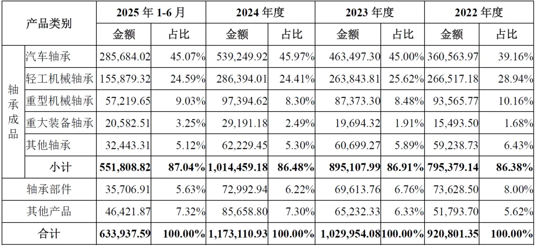 产品品类超5万种,覆盖所有滚动轴承品类,应用领域广泛,汽车轴承、轻工机械轴承市场份额领先,重大装备轴承、新兴产业轴承逐步实现突破。
