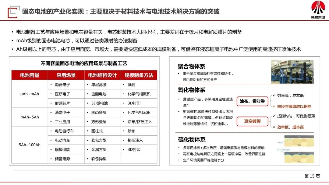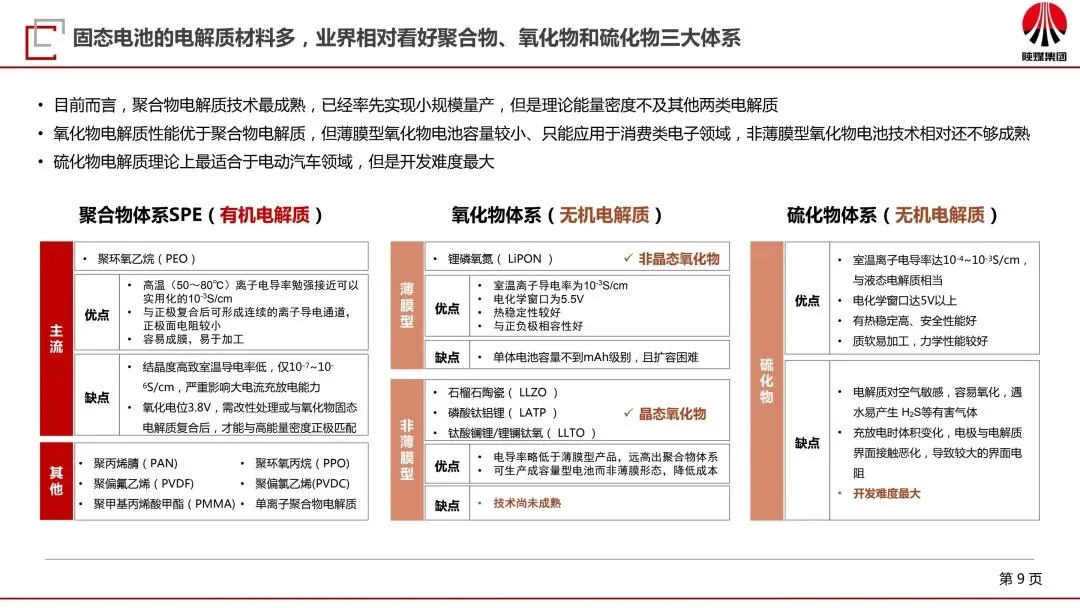 与传统锂电池相比,固态电池采用固态电解质,具有高安全性、高能量密度、长循环寿命等优势,尤其适合电动汽车与高端储能场景。目前主流技术路线包括聚合物、氧化物和硫化物三大体系,其中聚合物技术最成熟,硫化物潜力最大但开发难度最高。