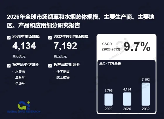 根据Global Info Research(GIR)调研数据,2025年全球烟草和水烟市场收入约为37.96亿美元,预计到2032年将跃升至71.92亿美元,2026至2032年间年复合增长率(CAGR)高达9.7%。这一显著增速不仅反映了消费习惯的演变,也揭示了新兴市场对风味型烟草产品的旺盛需求。