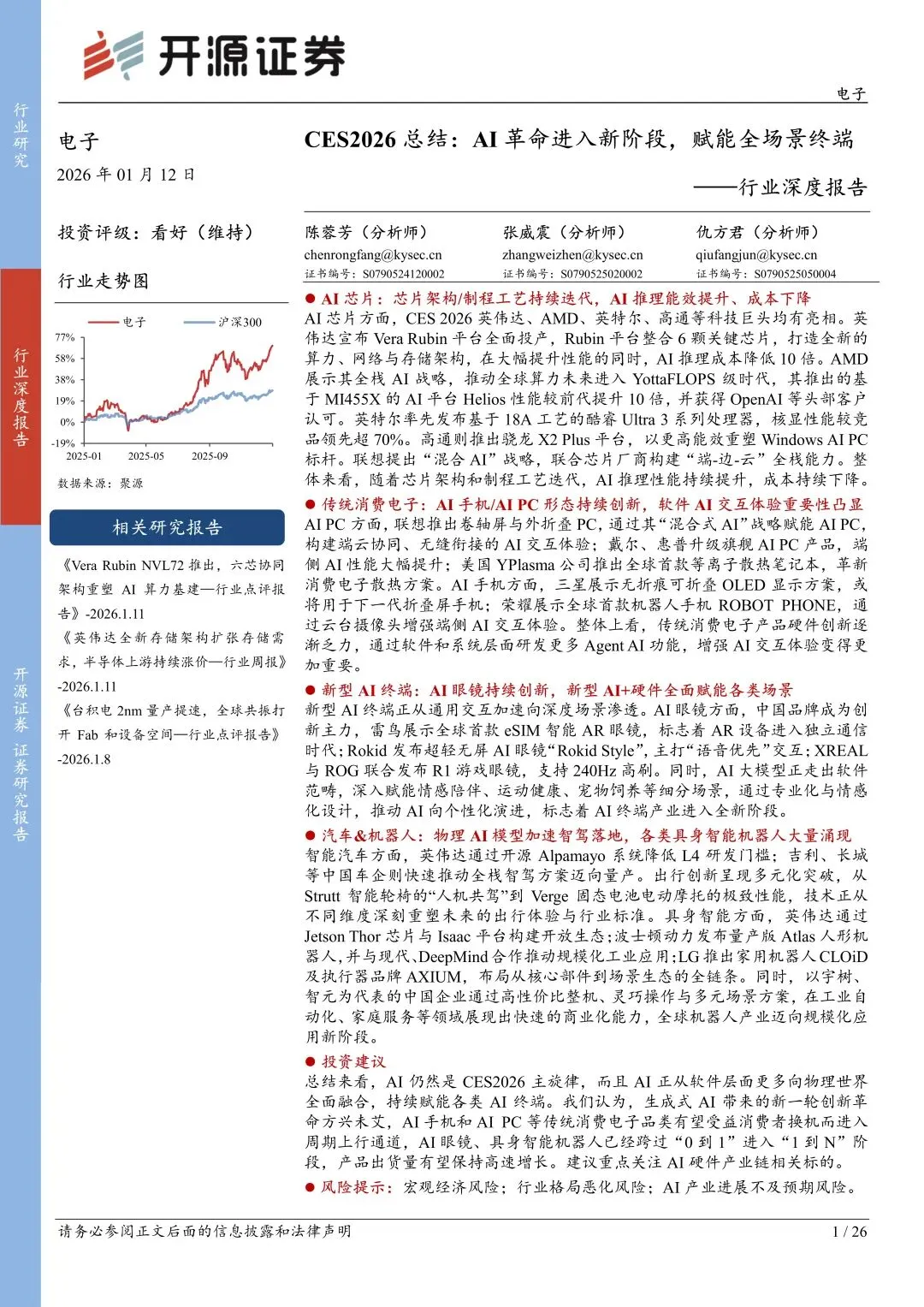 电子行业深度报告:CES2026总结,AI革命进入新阶段,赋能全场景终端-260112-开源证券-26页