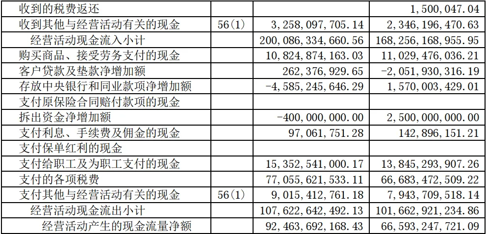 现金流量表反映的是现金及现金等价物本期的变化过程。1.销售商品、提供劳务收到的现金1826亿:记录企业本期销售商品收到的现金、本期预收款项(合同负债),收回以前期间的应收款项,减去本期退货支付的现金,注意,含代收增值税。假设本期营业收入1709亿粗略按13%增值税税率估算,应收回现金1931亿 ,加上预收款项(合同负债)-45亿,减去应收票据+20亿,计算此项现金流入是1866亿=1931-20-45,与1826亿相差40亿,推测是票据采购部分,即酱香酒营销公司销售系列酒,从下游企业收到银行承兑汇票,本期背书支付给了上游企业,(会计处理:借:应付账款 贷:应收票据),这部分收入没有体现为现金流入,在应收票据中也得不到体现。此项/销售收入≥1,说明本期收入都变成真金白银进了账户。2.客户存款和同业存放款项净增加额111亿:是茅台集团财务公司的经营现金流入,是归集的集团其他成员单位的资金增加,对应资产负债表“吸收存款及同业存放”本期+111亿。3.收取利息、手续费及佣金的现金31亿:是茅台集团财务公司拆出资金赚取得利息,存款利息不征收增值税,因此不再考虑增值税,直接对应合并利润表“利息收入”(“营业收入”下方)32亿。4.收到其他与经营活动有关的现金32.58亿,这个项目一般会反映自有资金的利息收入(“财务费用-利息收入”)、收取的质量、工程保证金等(“其他应付款”)罚款收入(“营业外收入”)、投资性房地产经营租赁的租金收入(“其他业务收入”),取得的政府补助(“递延收益、其他收益”)。此处的32.58亿,包含自有资金利息收入+15.7亿,罚款收入+0.6亿,经营租赁收入+0.01亿,收取的保证金+2亿,剩余14亿是什么?留个疑问待查。5.购买商品、接受劳务支付的现金108亿,反映企业本期采购支付的现金、支付以前的应付账款,注意,包含增值税进项税额。我理解主要是将来进入营业成本的项目。本期采购可以通过“存货明细-原材料”来计算,“原材料”本期采购=期末余额-期初余额+本期领用=31-33.6+69(“成本构成-直接材料”本期金额)=66.4亿,假设增值税税率11%,含税金额74亿。“成本构成-燃料动力”4亿,假设增值税税率13%,含税金额4.5亿。“成本构成-运输费”3亿,假设增值税税率9%,含税金额3.3亿。以上4项合计78亿=74+4.5+3.3-4,结果相差30亿,如果再加上第1项里的票据采购40亿,差额为70亿,会不会是茅台外购系列酒基酒支付的现金呢。6.客户贷款及垫款净增加额2.6亿:是茅台集团财务公司给集团成员单位的贷款及买方信贷业务,对应合并资产负债表“发放贷款和垫款”+2.6亿。7.存放中央银行和同业款项净增加额-46亿:是茅台集团财务公司将多余的钱存放在同业,对应合并资产负债表“拆出资金”+216亿。奇怪相差266亿,这是为什么呢?答案是二者的对应是不对的。同业存放里,所有权和使用权不受限制的部分,本来就是现金及等价物,这部分的变化不影响现金流,分析这部分的变化就如同是在分析“货币资金”项目的内部变化。而影响现金及等价物的部分,是受限制的那部分的变化情况,也就是存放中央银行的法定准备金+14亿,同业定期存单-60亿,二者合计是-46亿≈-6000000000+(7403523670.43-5991813679.87),与此项目现金流差异304万应该是账面余额里面包含了应计利息导致的。8.拆出资金净增加额-4亿整:对应资产负债表“拆出资金”-4亿≈(2103875000.02-26114886.93)-(2508579166.67-15705882.07),应该是拆出资金账面余额包含了应计未收的利息。实际就是茅台财务公司收回了同业拆借资金4亿。“拆出资金”是金融机构(茅台集团财务公司)拆借给其他金融机构的款项,拆借的期限很短,1~2天,是金融机构之间临时的资金借贷行为。这个和存放在同业的存款还是有点不同的。9.支付利息、手续费及佣金的现金1亿:是茅台集团财务公司支付给集团成员单位的利息,对应利润表“利息支出”“手续费及佣金支出”合计1亿元。10.支付给职工及为职工支付的现金153.5亿,包括支付给职工的工资、奖金、各种津贴、补贴等,以及为职工支付的五险一金、福利费、工会经费、职工教育经费等。11.支付的各项税费771亿,应交税费减少额=应交税费期末-期初+本期确认,粗估对应“税金及附加”269亿,增值税200亿(见(十二):税金及附加),当期所得税费用(“应交税费-应交所得税”)311.5亿,应交税费+8亿,支付的税费772.5=269+200+311.5-8,大体相当。12.支付其他与经营活动有关的现金90亿,主要是销售费用、管理费用中除去职工相关后剩余的付现费用、营业外支出。包括广告费、差旅费、业务招待费、保险费、罚款支出、经营租赁的租金、对外捐赠等。经营性现金流量净额925亿/净利润893亿=1.04≥1,说明经营活动赚到了真金白银,而不是应收账款、库存。持续>1,说明企业销售商品的商品供不应求,预收款或现款交易,或者是折旧比较高的重资产公司,也有可能经营性现金流量净额持续高于净利润;企业是“印钞机”的概率比较大。另外,折旧摊销总额是21亿,经营性现金流量净额925亿远大于它,说明企业不仅能正常经营,补偿投入资产的折旧摊销,还有剩余资金可用于扩大再生产,成长性高,超过金额越多,成长性越高。