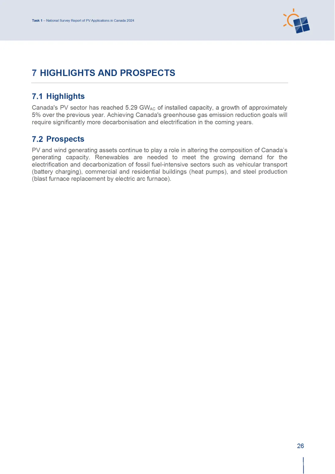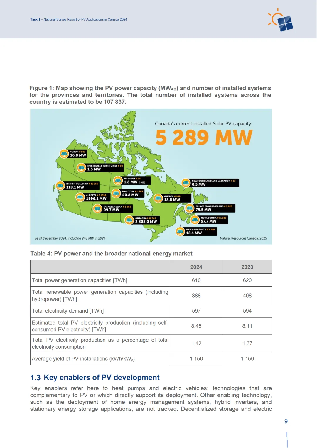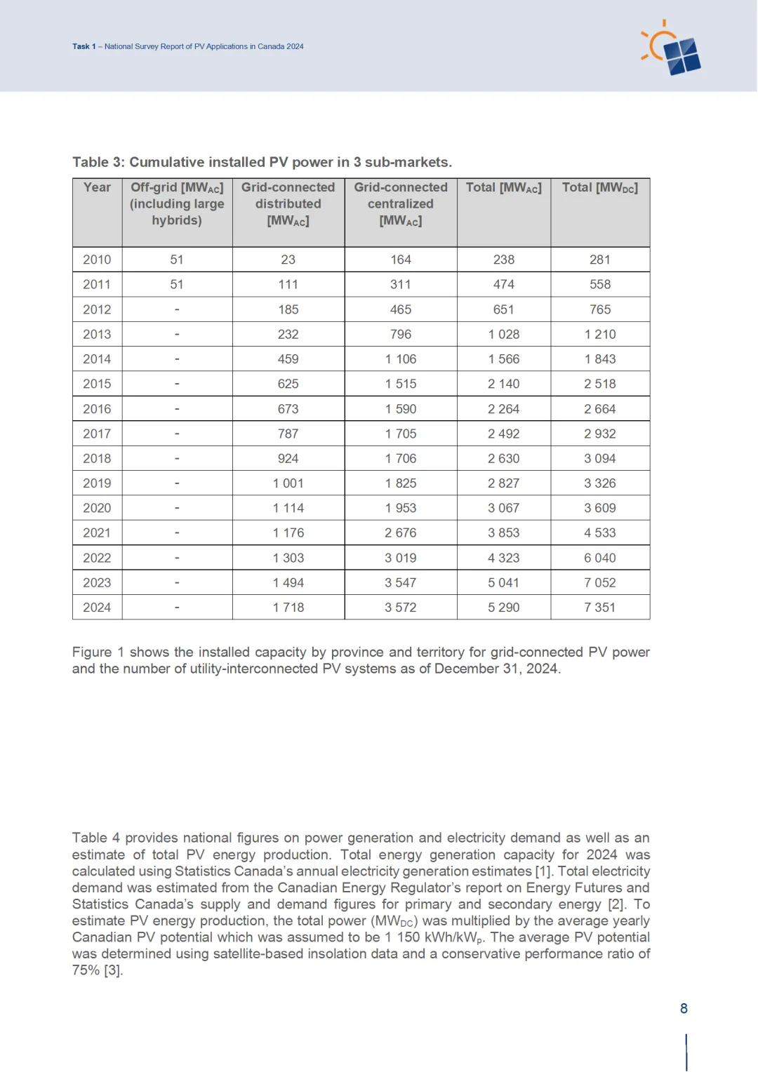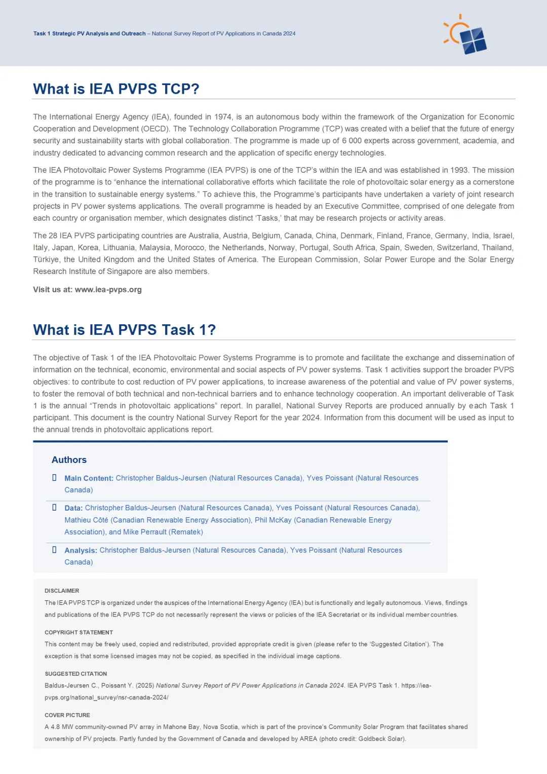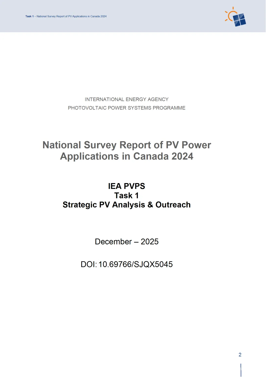 IEA PVPS任务1发布了2024年加拿大光伏电力应用全国调查报告。报告详细概述了光伏市场的发展、政策框架、系统价格、行业结构以及2024年加拿大能源系统中光伏的作用。