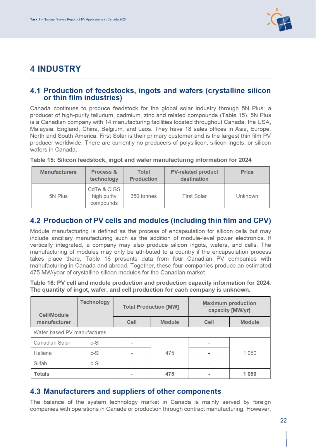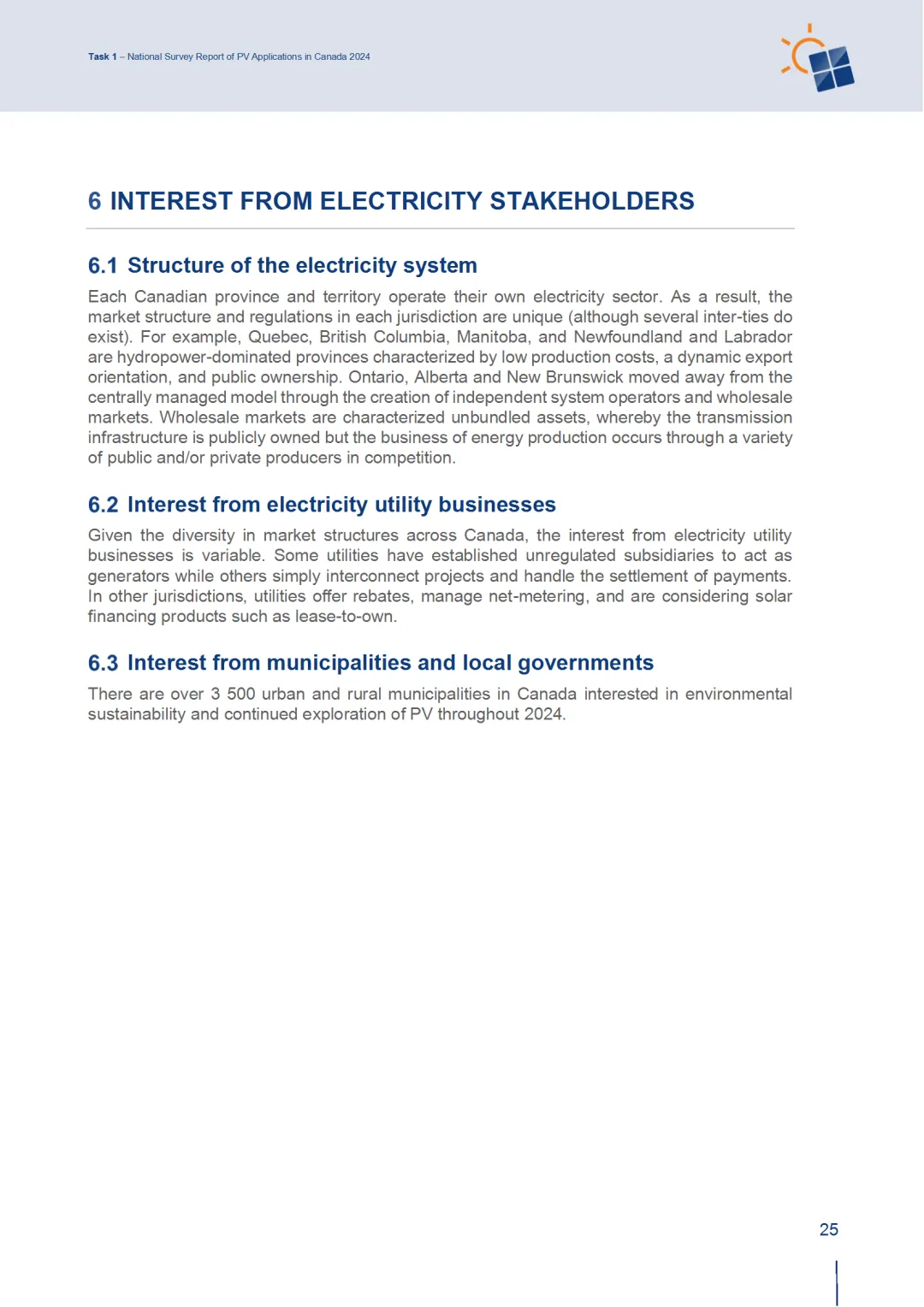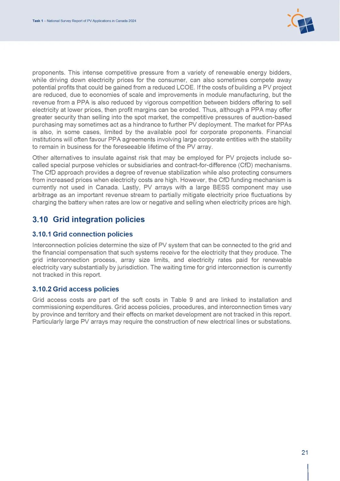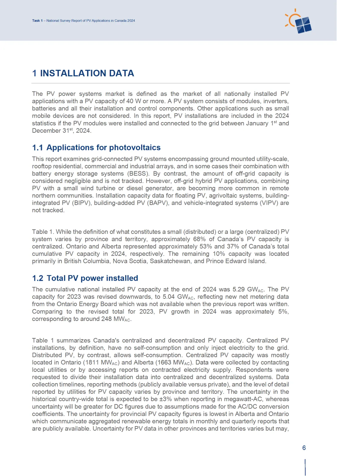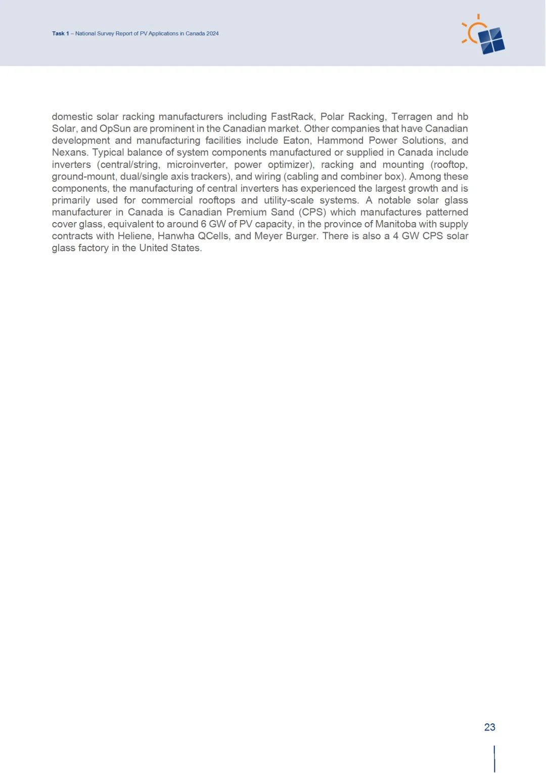 IEA PVPS任务1发布了2024年加拿大光伏电力应用全国调查报告。报告详细概述了光伏市场的发展、政策框架、系统价格、行业结构以及2024年加拿大能源系统中光伏的作用。