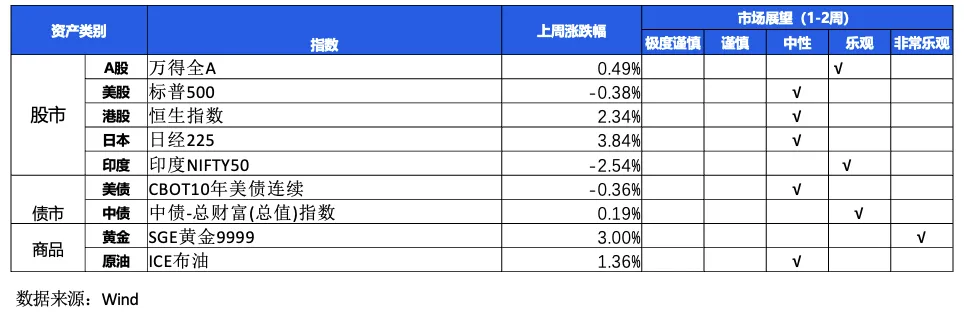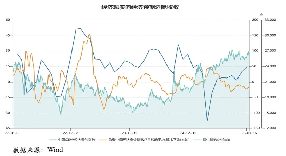 短期来看,四季度财报季盈利预期上修,但格陵兰地缘风险升温,IEEPA关税裁决或临近叠加美联储理事Cook口头辩论,美联储独立性或仍扰动风偏,美股或震荡;出口偏强和PMI逆势走强支撑经济现实指数向经济预期边际收敛,港股有望延续偏强状态,但更多或呈现结构行情;当前金价持续突破前高,叠加长期逻辑清晰,整体维持乐观观点;原油市场正从需求主导的悲观预期,转向供需双向博弈的平衡阶段,市场将在“弱需求”与“紧供给预期”的夹缝中寻找新的平衡,对原油展望调整为中性。