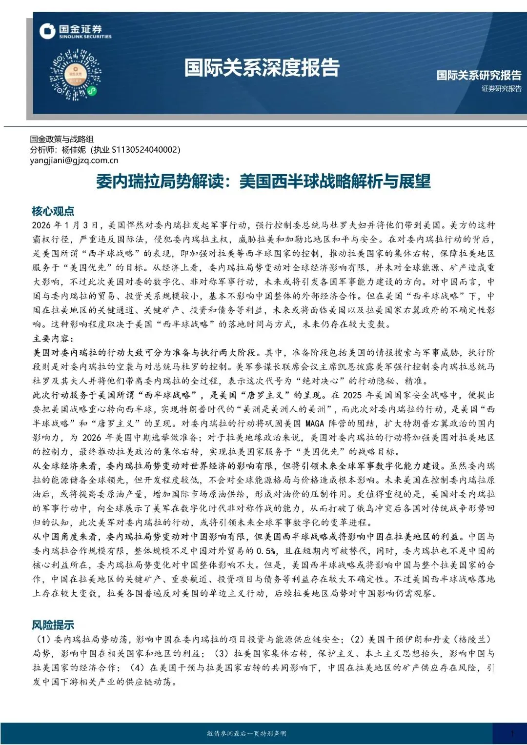回复暗号:国际关系深度报告:委内瑞拉局势解读,美国西半球战略解析与展望-260112-国金证券-15页