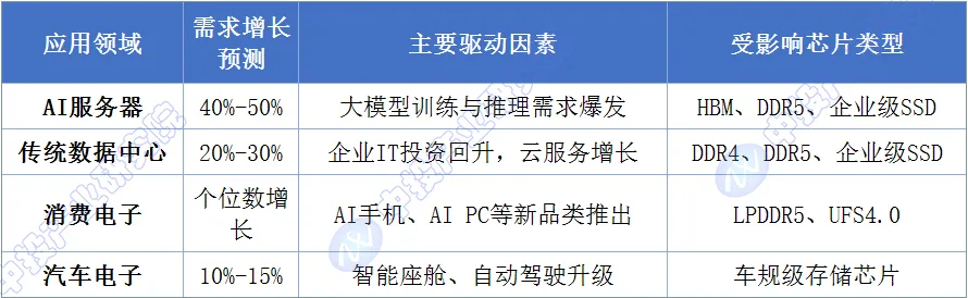 图表3:各细分市场存储芯片需求增长预测(2026年)