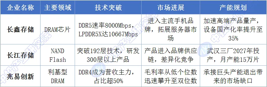 图表10:国产存储芯片企业技术与市场突破概览(2025-2026年)