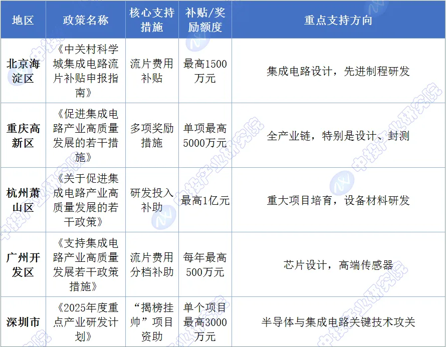 图表9:2025-2026年全国重点区域集成电路产业支持政策对比