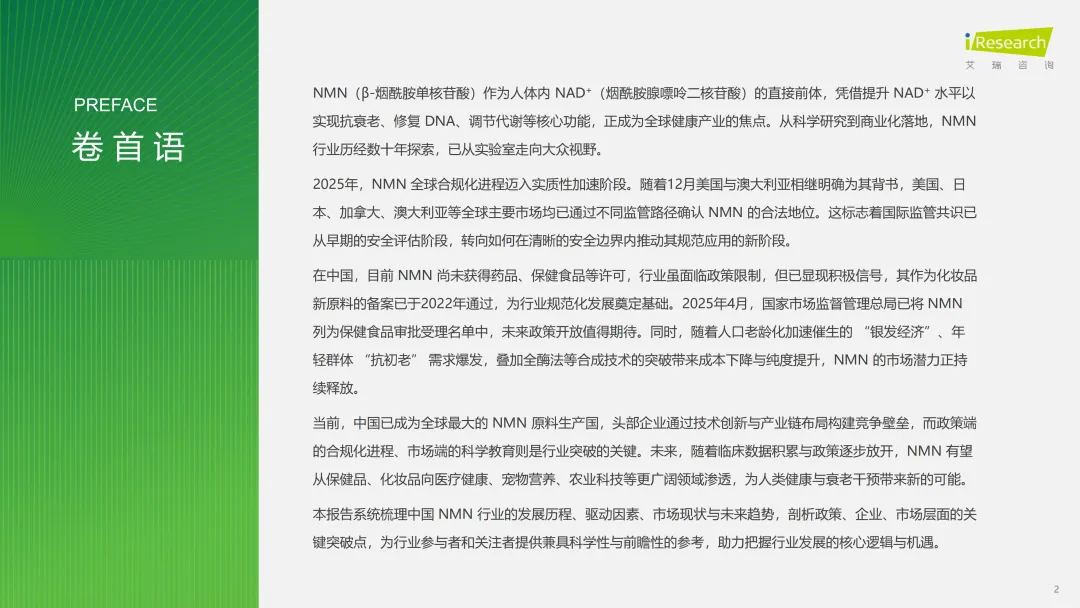 1.中国NMN行业的合规化进程现在处于什么阶段?未来突破的关键又在哪里?