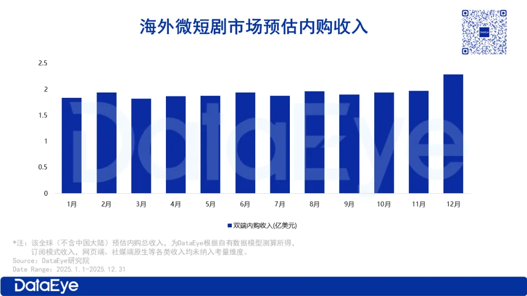 据DataEye研究院预估,2025年海外微短剧市场预估双端内购收入22.79亿美元,同比增长129%。