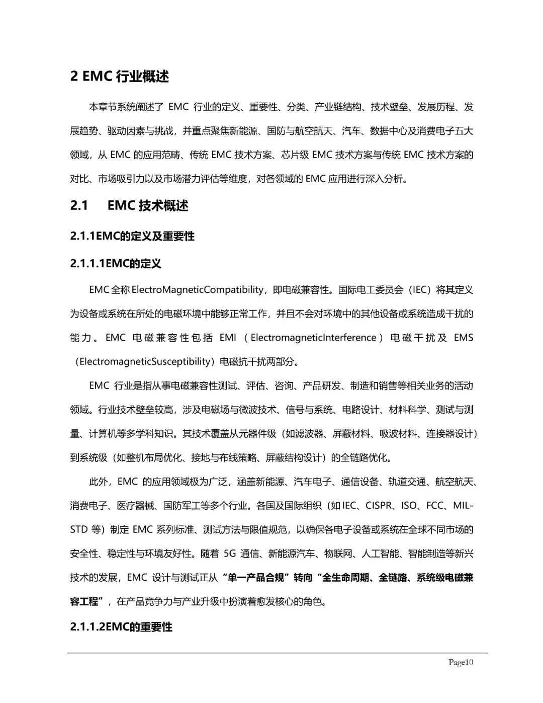 本章节主要对 EMC 行业市场规模、下游应用场景进行高度总结,重点从市场规模增长空间、芯片级 EMC 技术方案突破点、以及芯片级 EMC 技术方案渗透率等维度,对各下游应用市场进行系统评估,判断各下游应用市场中 EMC 市场的发展潜力。
