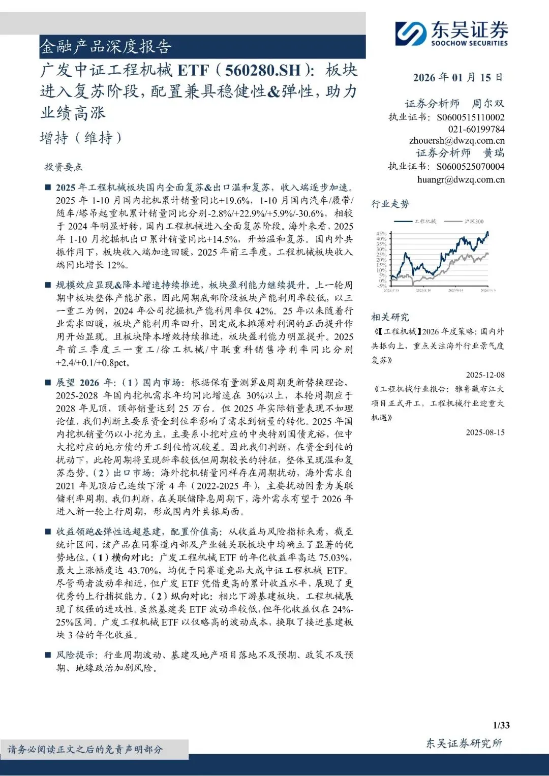 工程机械行业广发中证工程机械ETF(560280.SH):板块进入复苏阶段,配置兼具稳健性%26弹性,助力业绩高涨-260115-东吴证券-33页