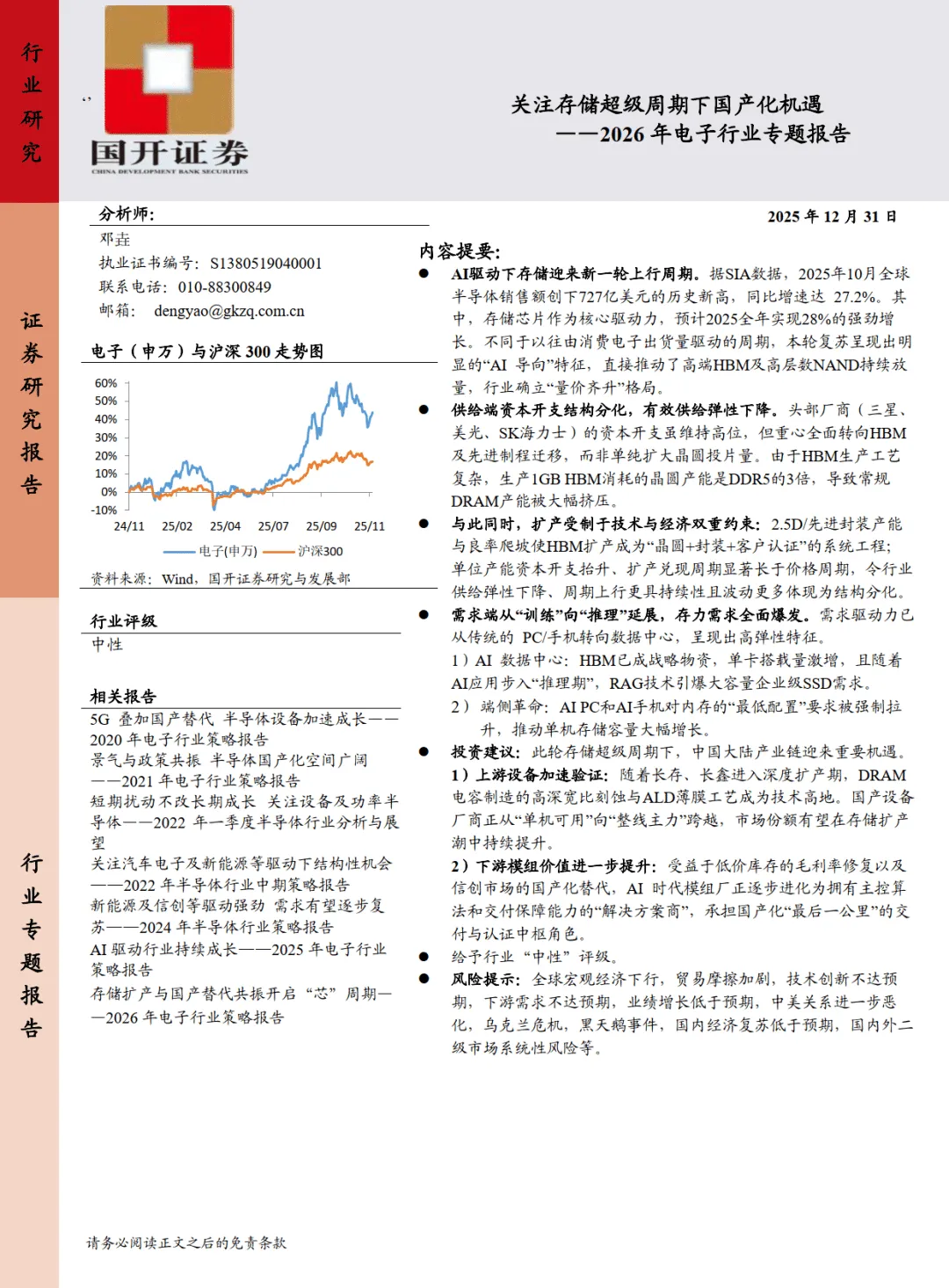 2026年电子行业专题报告:关注存储超级周期下国产化机遇-国开证券