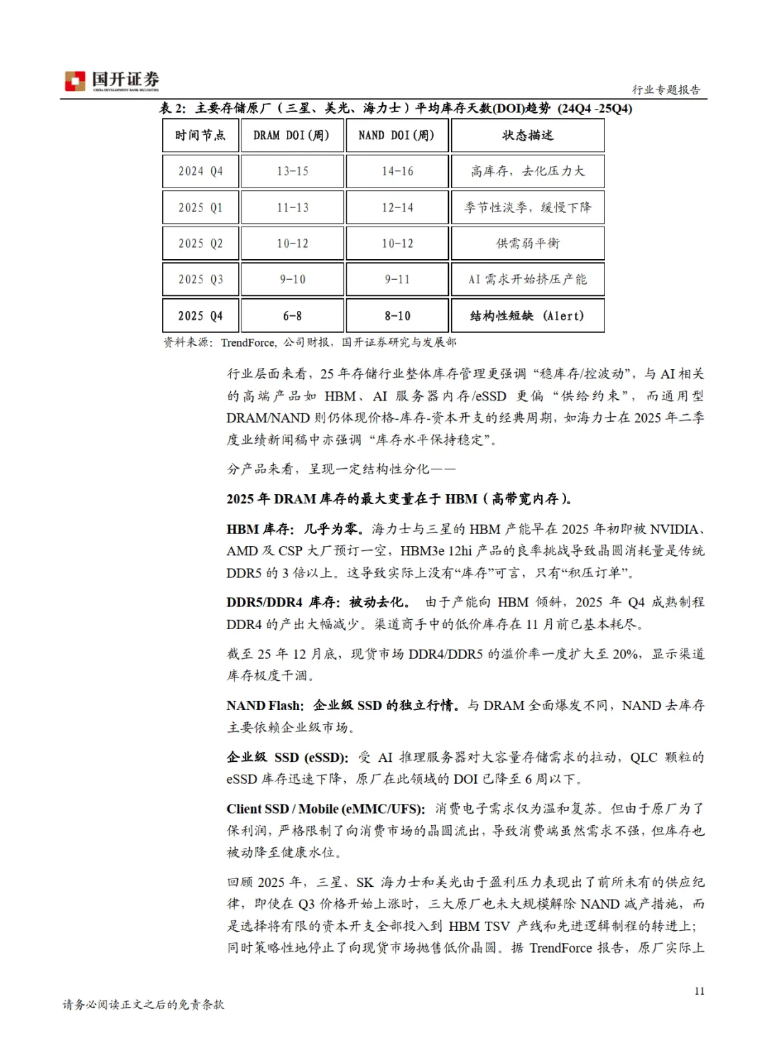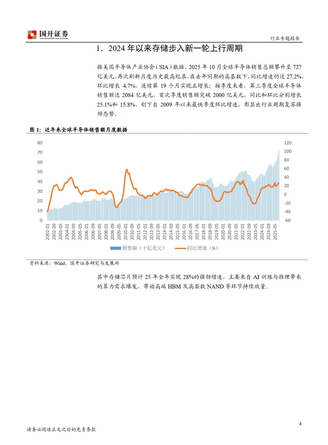 2024 年起,存储行业步入新一轮上行周期,AI 成为核心驱动引擎。据 SIA 数据,2025 年 10 月全球半导体销售额达 727 亿美元,创历史新高,同比增长 27.2%,其中存储芯片全年增速预计达 28%。本轮周期区别于以往消费电子驱动模式,呈现 “AI 导向” 特征,高端 HBM(高带宽内存)及高层数 NAND 持续放量,行业确立 “量价齐升” 格局。————