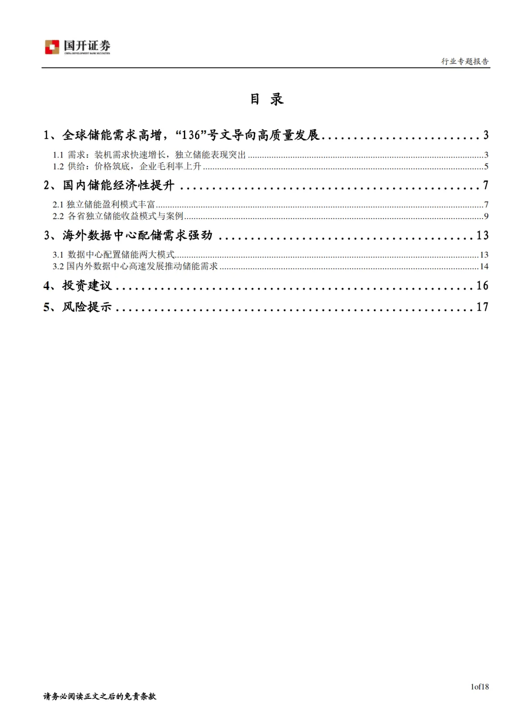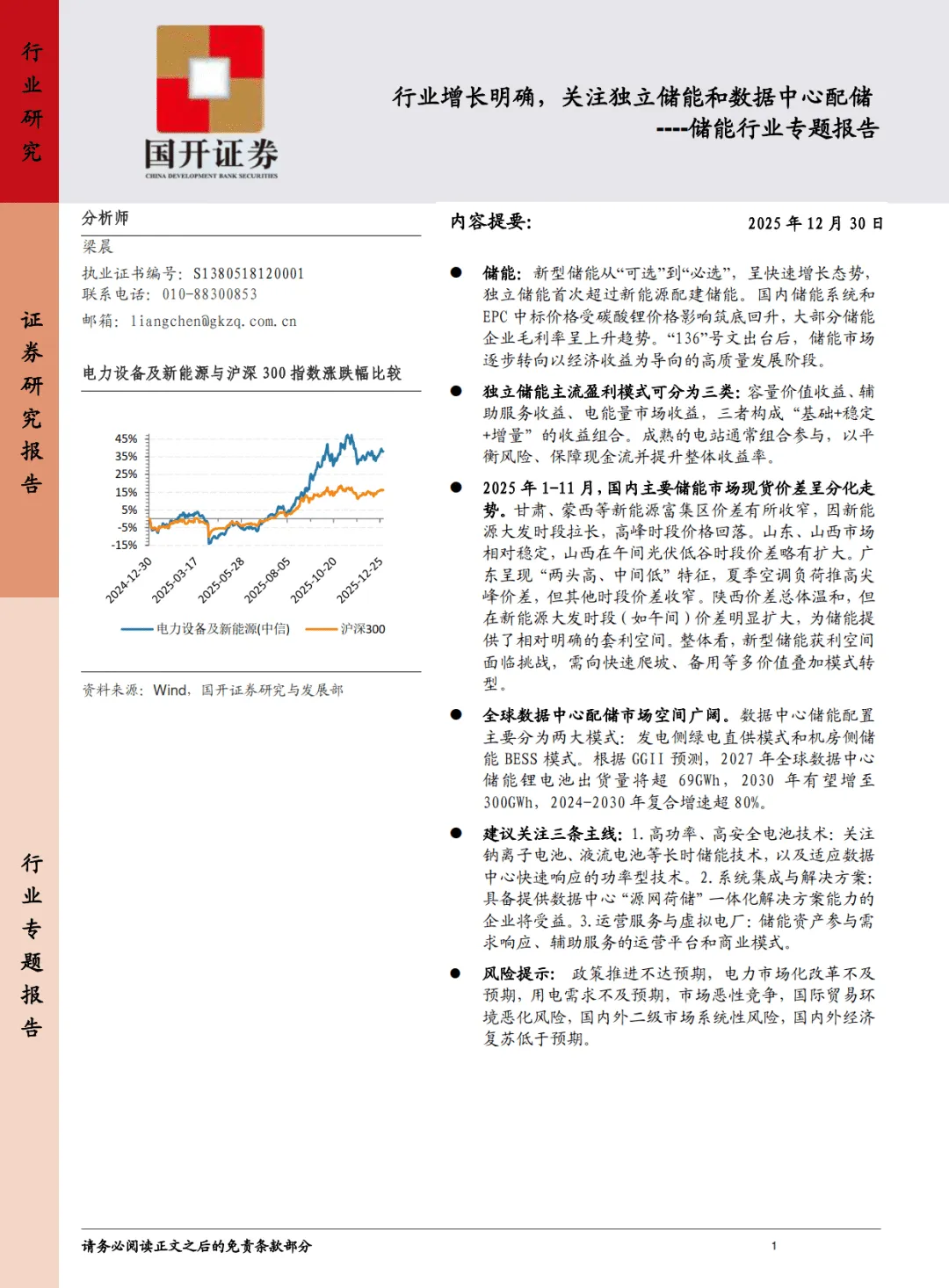 储能行业专题报告:行业增长明确,关注独立储能和数据中心配储-国开证券