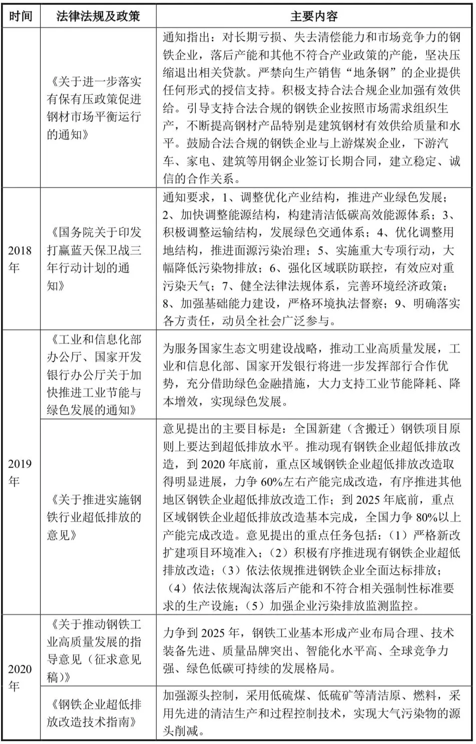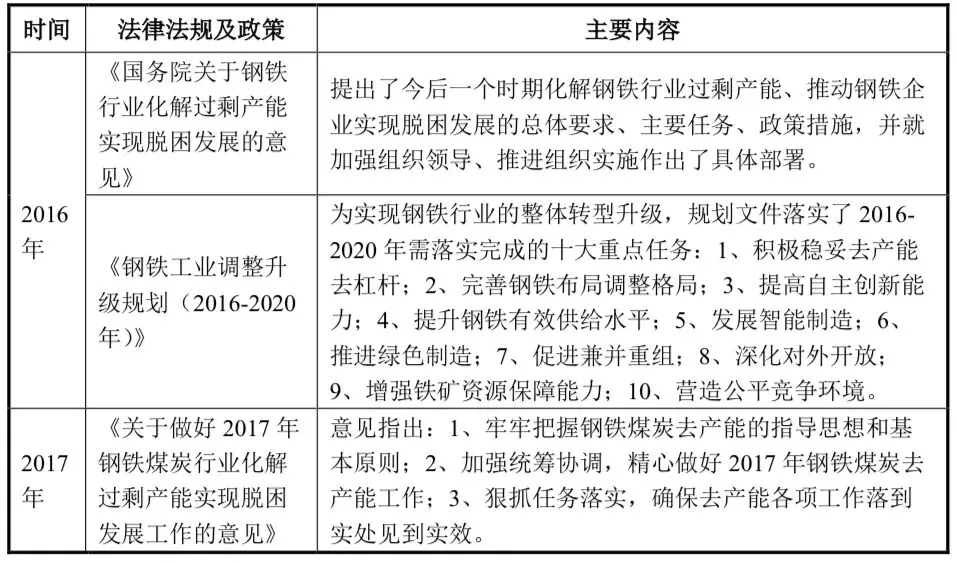 钢铁工业是国民经济的支柱产业,在我国推进工业化和城镇化进程中发挥着重要作用。为促进钢铁工业的全面、协调和可持续健康发展,国家近年来出台了多项行业规划性政策,主要如下: