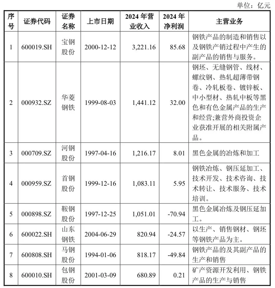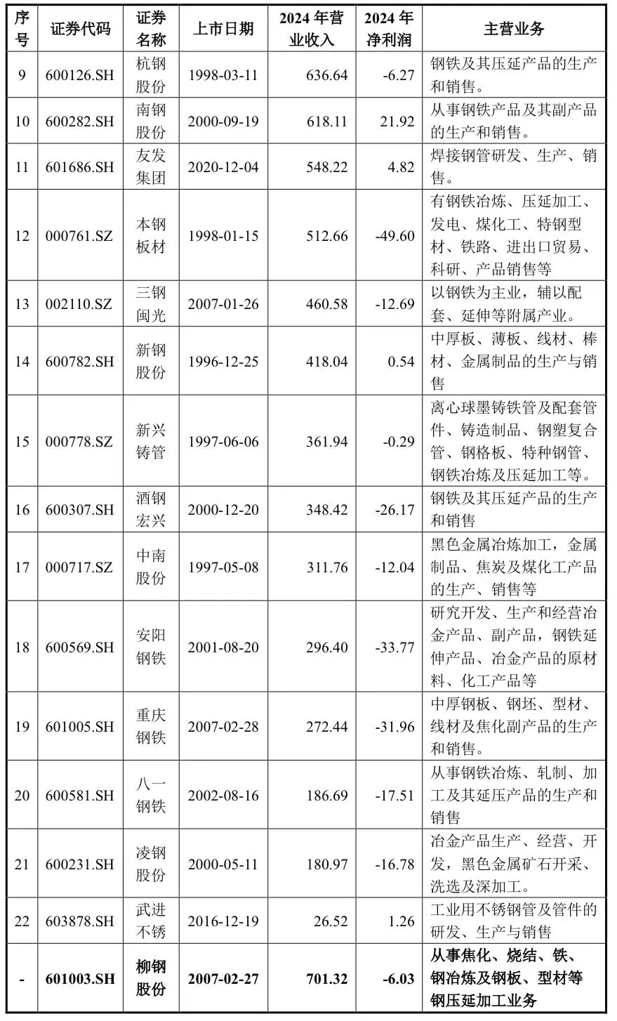 A 股市场中钢铁行业上市公司众多,公司主要从事焦化、烧结、铁、钢冶炼及钢板、型材等钢压延加工业务。根据申万行业分类,柳钢股份属于钢铁-普钢行业,该分类下同行业上市公司如下: