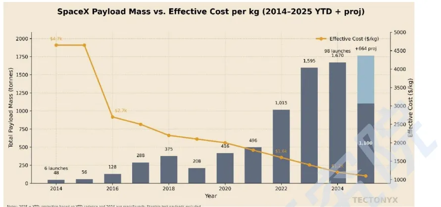 SpaceX猎鹰9号发射成本已降至1500美元/公斤以下