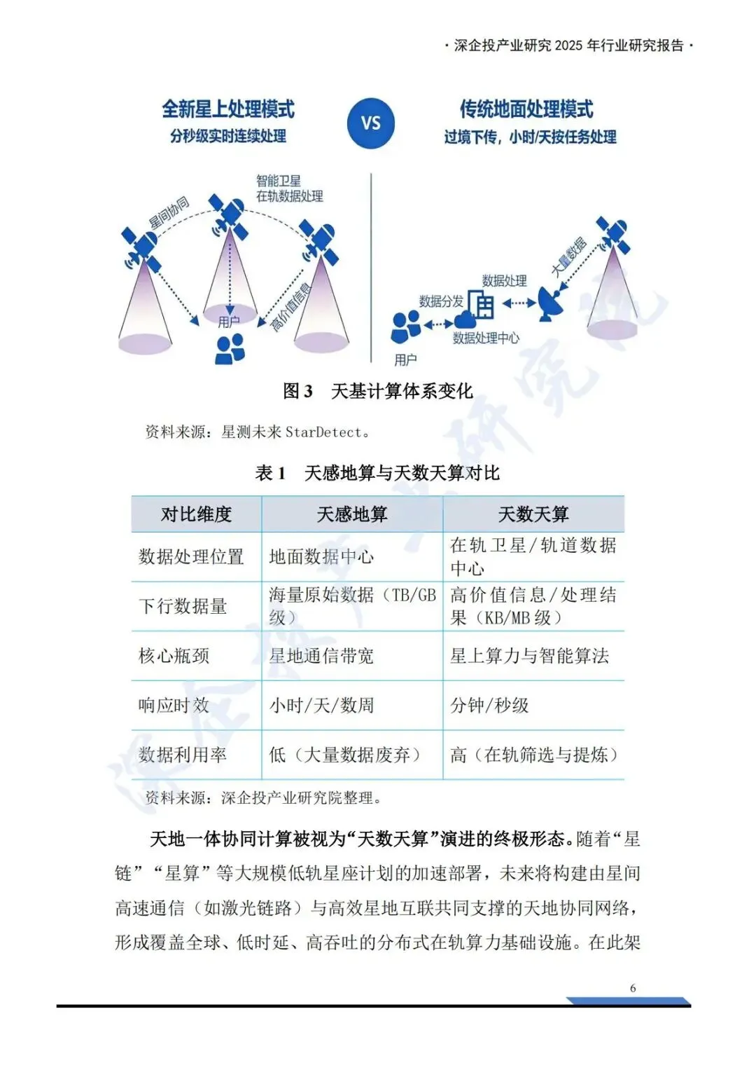 太空算力实现了"天数天算"的范式跃迁,卫星直接在轨对原始数据进行处理、筛选和智能分析,仅将高价值的分析结果(KB/MB级)下传。这从根本上破解了数据传输瓶颈,将响应时间从"小时级"压缩至"分钟甚至秒级"。