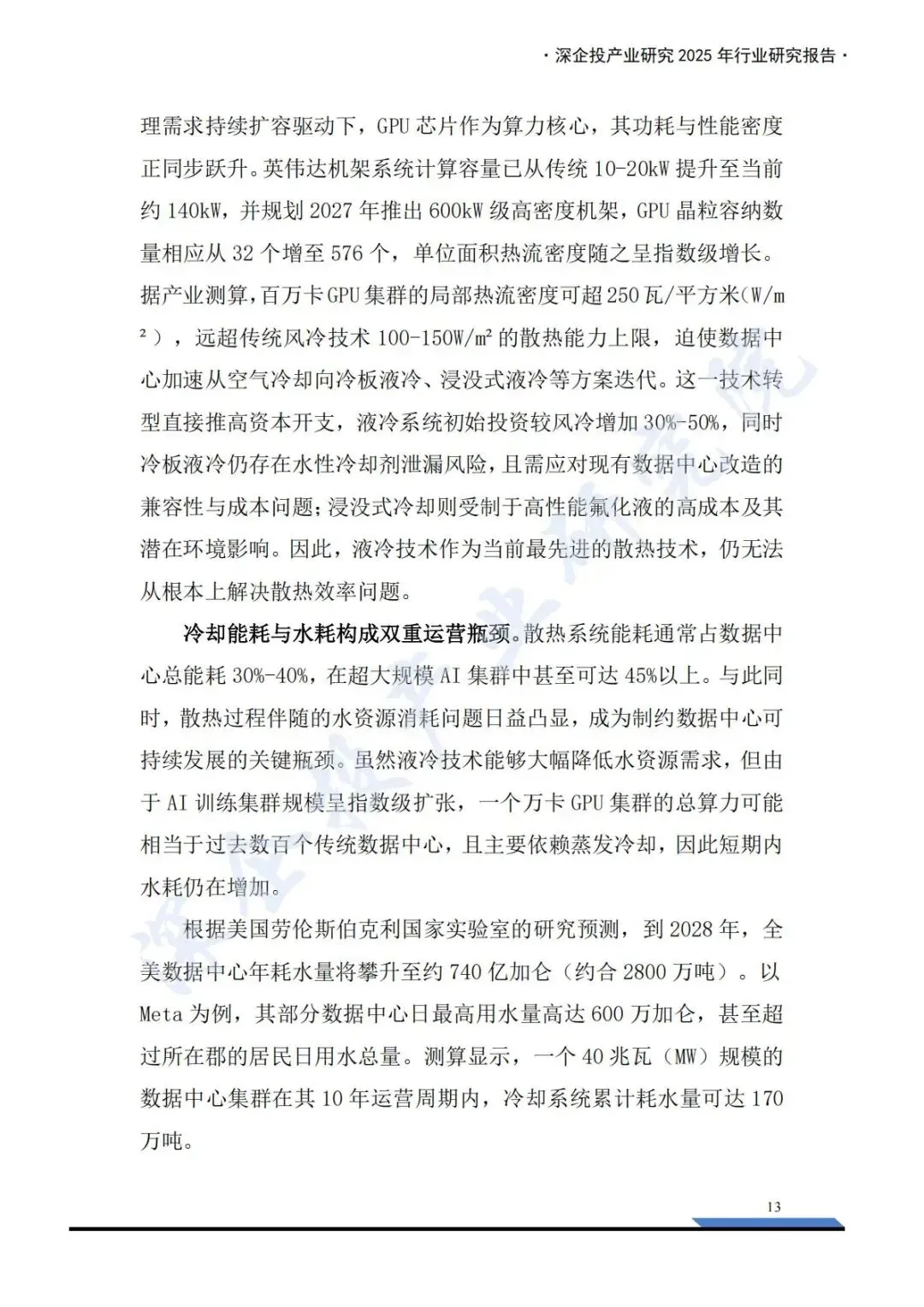 散热挑战:功耗密度攀升倒逼散热技术代际切换,液冷系统投资较风冷增加30%-50%
