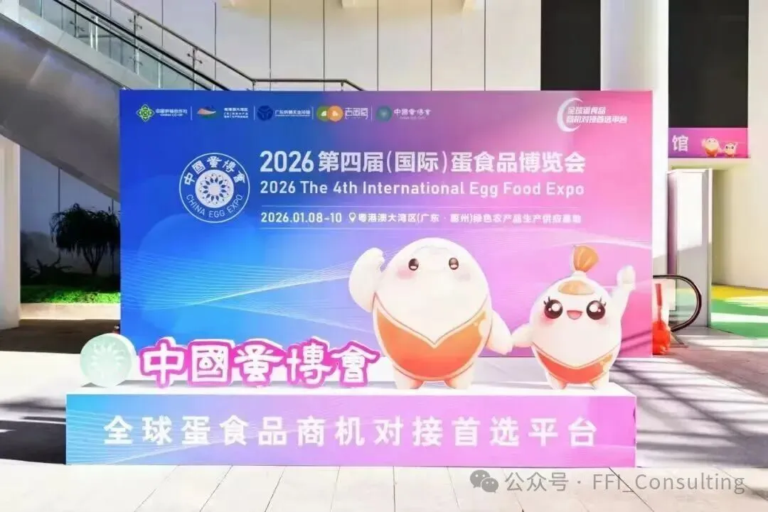 丰羽咨询公司于2026年1月8日至10日参加了在广东省惠州市举办的第四届国际蛋品博览会,并有机会了解中国蛋品行业的最新创新和产品研发成果。一如既往,中国蛋品行业充满活力,尽管蛋价还很低迷,但仍在不断探索新的发展方向。