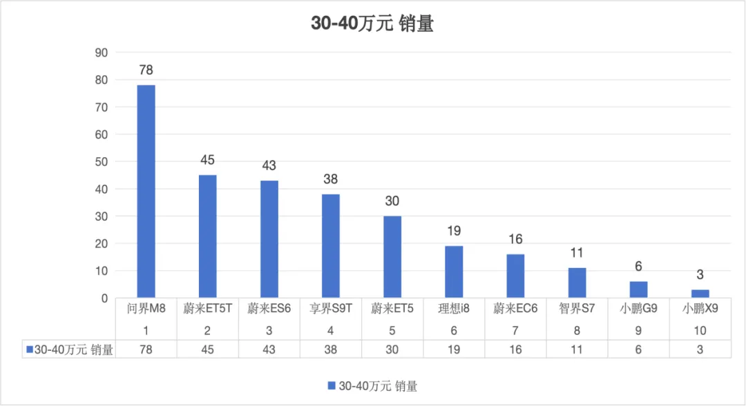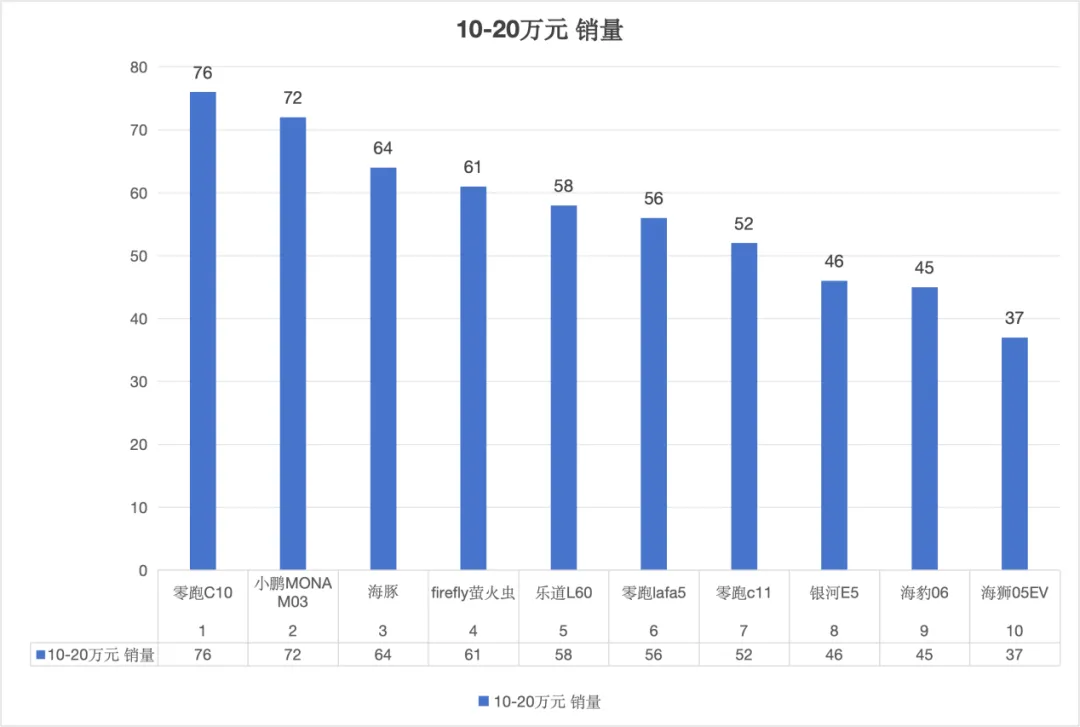 新能源销量排名前三的为比亚迪、鸿蒙智行、吉利银河,分别销售650台、508台、479台。 具体销量如下: