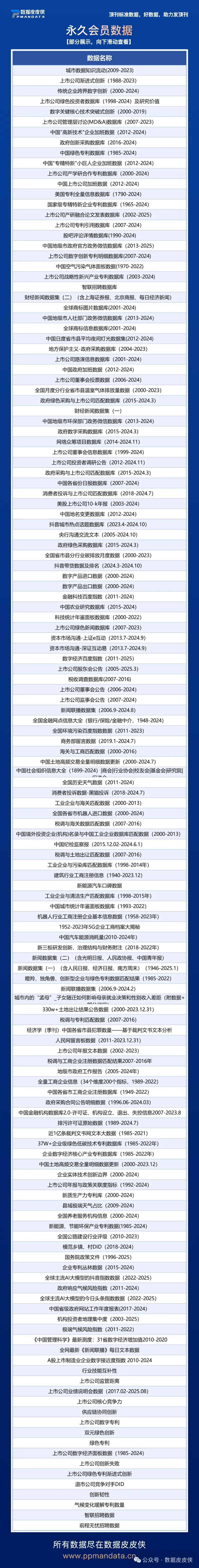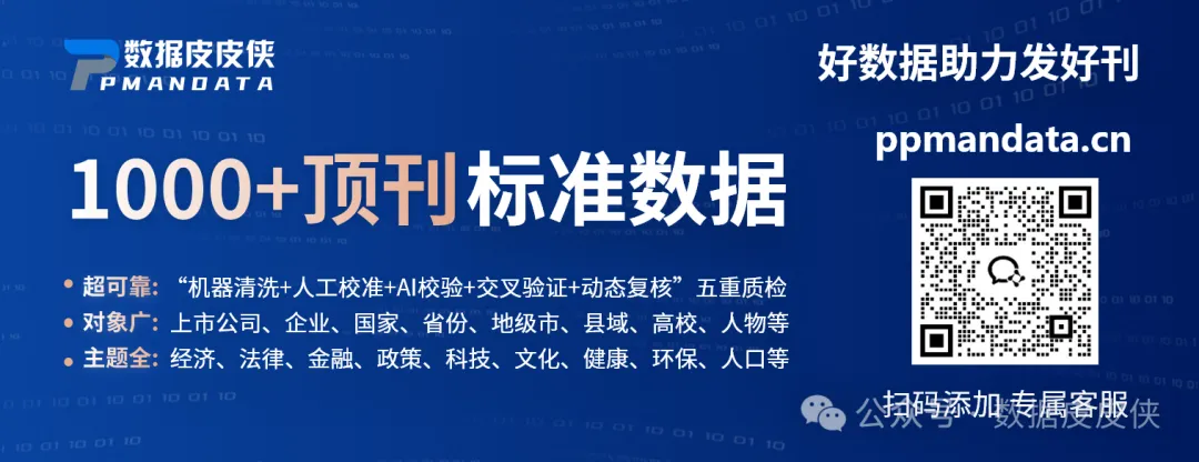 CNPaperData(简称CNPD)是立足大规模数据采集、清洗、挖掘的国家高新技术企业,借鉴Compustat、WRDS等国际知名数据库及FT50期刊专业标准,打造中国特色经济管理社会科学研究型数据库。涵盖上市公司、企业、省份、地级市、县域、高校、人物等研究对象,涵盖经济、法律、金融、政策、科技、文化、健康、环保、人口等各类热门数据。顶刊标准数据,好数据助力发好刊!获取数据地址https://www.ppmandata.cn/trade/list