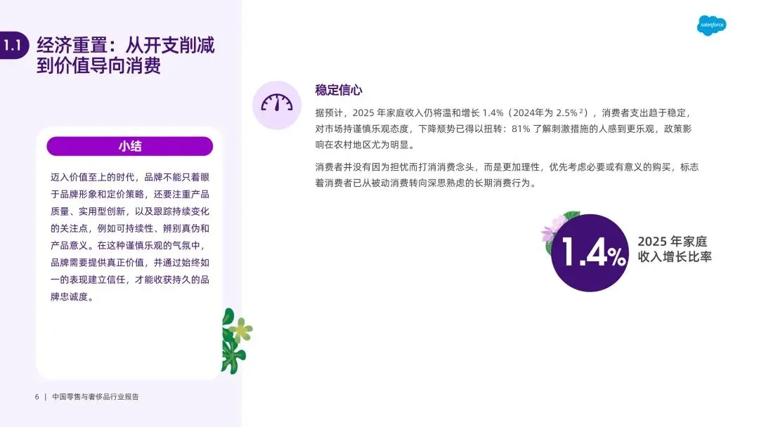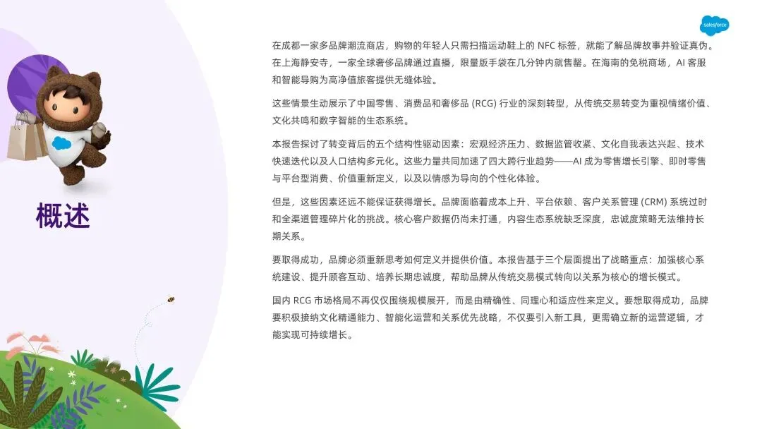 报告聚焦 2025 年中国零售与奢侈品(RCG)行业,剖析经济、政策、文化、技术、人口结构五大结构性驱动因素,揭示 AI 赋能、即时零售、价值消费、情绪导向个性化四大核心趋势。指出行业面临系统疲劳、全渠道碎片化、客户价值盲区等障碍,提出 “构建互联运营、提升顾客互动、培养长期忠诚度” 三大战略方向,助力品牌从交易模式转向关系导向的可持续增长。