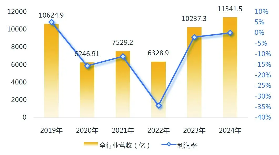 图2:2019~2024年行业营收及利润率变化趋势