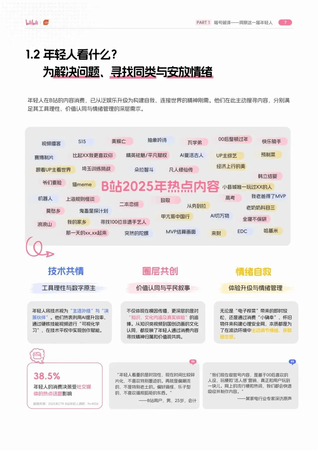 哔哩哔哩携手央视市场研究(CTR),基于B站平台内容与用户行为数据,结合CTR专项问卷调研与行业深访,深入这群年轻消费者的心智底层,解码他们的态度变迁,测绘正在崛起的消费沸点。我们期望通过这份报告,不仅呈现超势,更提供一份可供品牌参考的“入局指南”—一在这片年轻人主宰的舞台上,唯有真诚理解、平等对话深度共建,才能真正跨越代际与认知的河整,转变为值得年轻人信赖的“自己人”