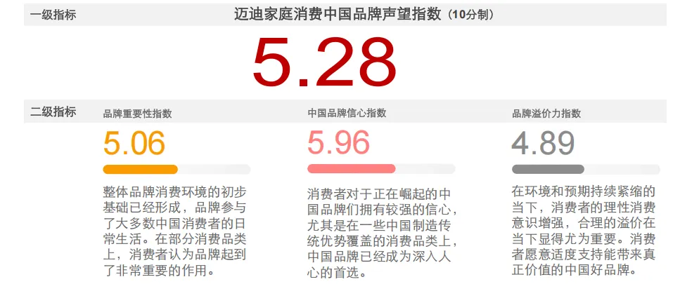 迈迪原创的 “中国品牌声望指数” 为行业发展提供了科学的量化参考,该指数从品牌重要性、中国品牌信心、品牌溢价力三大维度,全面衡量中国品牌在消费市场的势能表现。2025 年整体指数为 5.28 分,其中生活小家电品类表现亮眼,中国品牌信心指数位列各品类第 3 名,达到 8.32 分,展现出消费者对国货的高度认可。