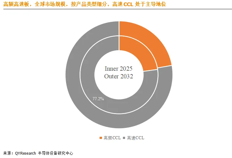 就产品类型而言,目前高速CCL是最主要的细分产品,占据大约77.2%的份额。