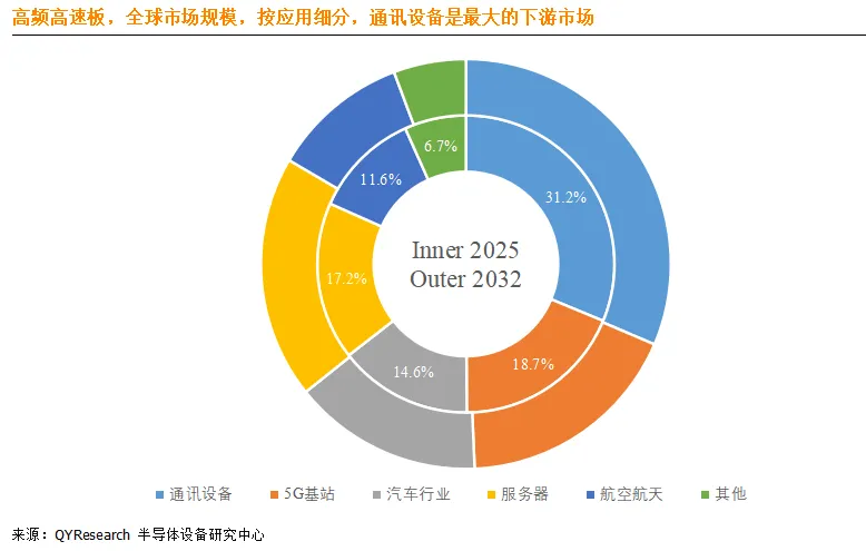 就产品应用而言,目前通讯设备是最主要的需求来源,占据大约31.2%的份额。