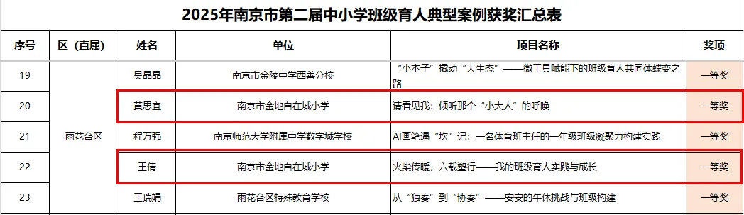 力小金地德育工作扎实高效,秉持“儿童化、课程化”理念,全年举办和承办校级以上德育活动96场。“国旗伴我成长”“力力童声・自在播报”“石墩彩绘”“小萌星剧场”等特色项目深受学生喜爱,教育意义深远。德育队伍建设成效显著,3名教师获得市级奖项:黄思宜、王倩老师在南京市第二届中小学班级育人典型案例大赛中均获一等奖,刘钰聪老师在2025年南京市小学心理健康教育优质课展评活动中获二等奖。