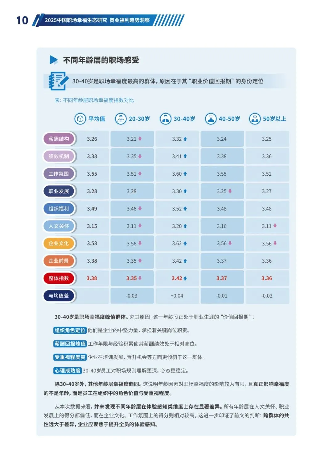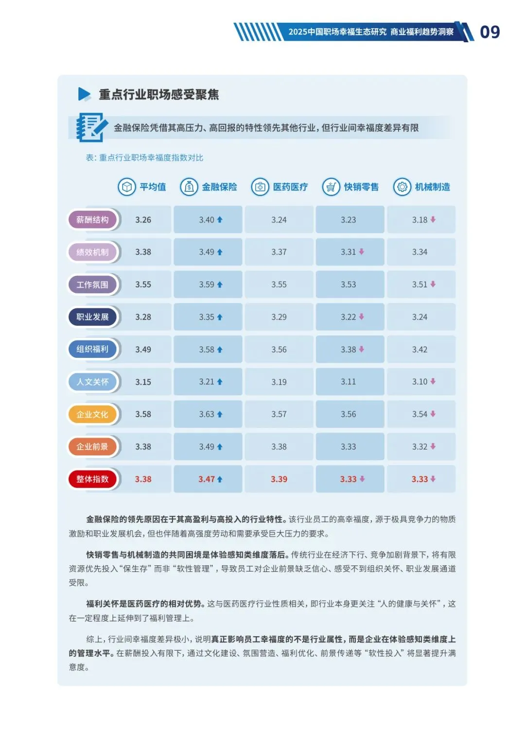 行业分化加剧了人力资源管理的复杂性:当利润率持续下滑时,人力成本成为首要控制对象,直接导致薪酬增长停滞、福利削减、培训收缩,形成“经营压力→人力成本管控→员工满意度下降”的传导链条。“硬性条 件”的恶化,不仅直接降低员工的物质回报,更通过心理预期的负面影响,削弱员工对企业前景的信心与对职 业发展的期待。