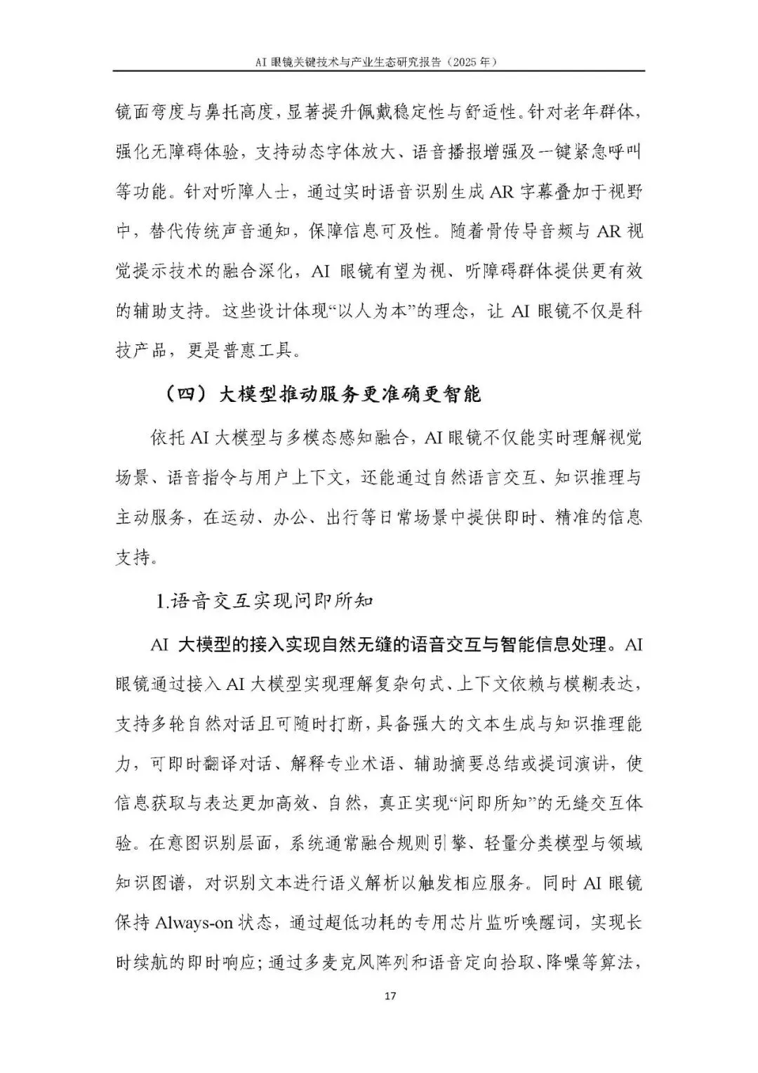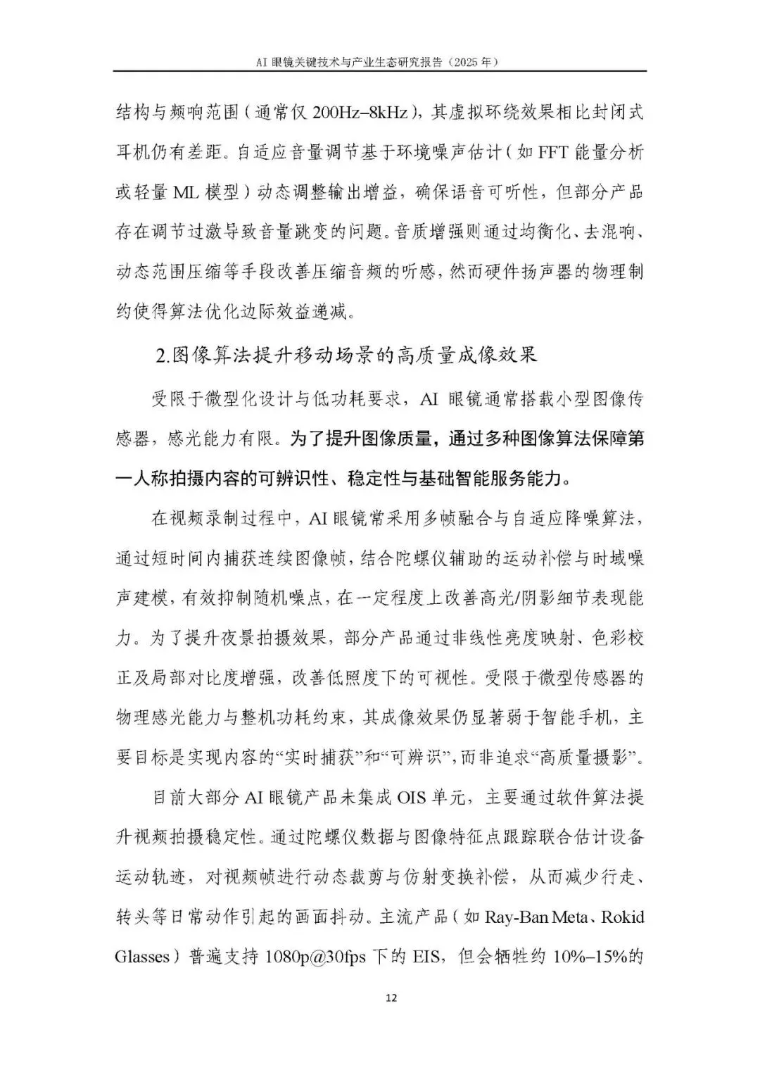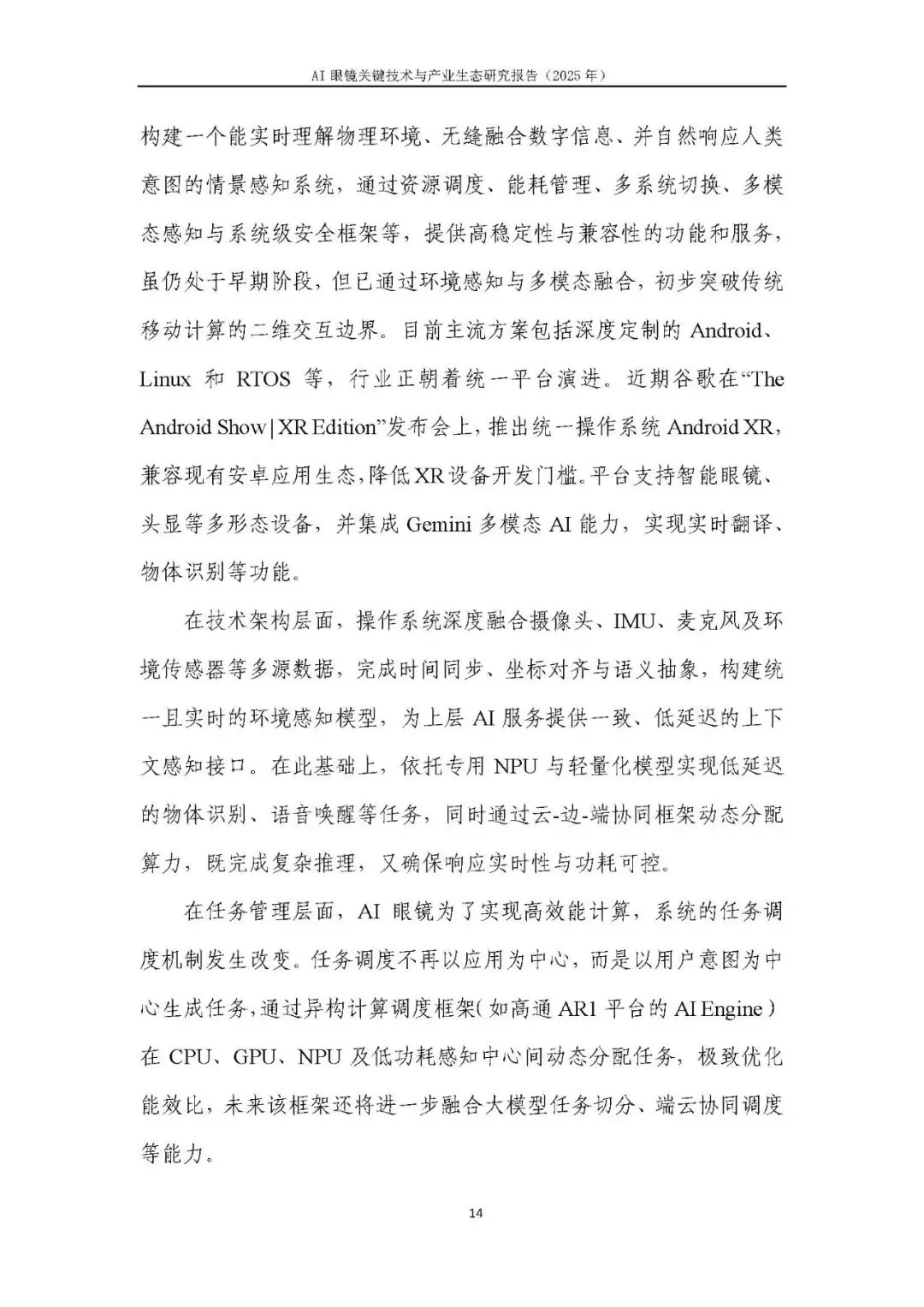 音频算法通过多麦克风融合、降噪与音效优化提升语音交互体验;图像算法借助多帧融合、EIS 防抖等改善成像质量,端云协同支撑 OCR 翻译等智能功能;操作系统向空间计算演进,Android XR 等平台实现多设备兼容与 AI 能力集成;大模型赋能让设备具备自然对话、知识推理与主动服务能力,个人智能体推动从 “被动工具” 到 “主动伙伴” 升级;多模态交互融合视觉、听觉等信号,构建无缝人机交互框架。